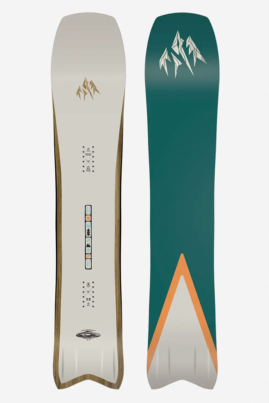 The Hovercraft 2.0 is an explosive alternative freeride board with a tapered directional shape that offers surprisingly diverse performance. With a floaty nose, camber underfoot and a long sidecut, the Hovercraft charges through pow, crust or corn, and rails on piste. The Hovercraft also features Re-Up Tech and is built with recycled materials from old snowboards.