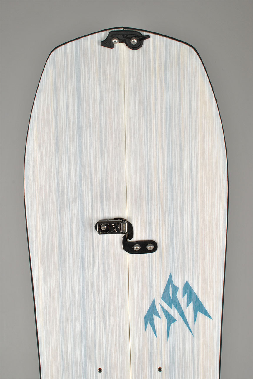 Based off a tried and true splitboard baseplate, this chassis works with a splitboard puck-mount system and features an easy-to-use rail and hook system for the interchange between walk and ride modes.