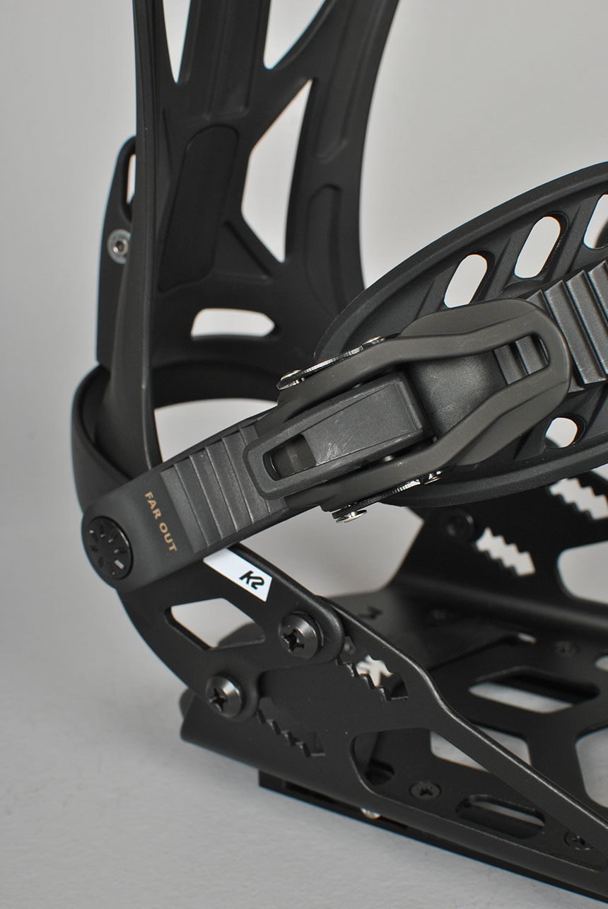 Lift tickets and long lines? Who needs ‘em? The K2 Far Out Splitboard Binding specializes in chairlift liberation. Built with backcountry durability and all-day comfort in mind, the Far Out uses our ergonomic Sender™ ankle strap, a tried and true puck mount system, and our Perfect Fit™ 2.0 toe strap to give you the perfect blend of luxury and efficiency, that will hold up for the long haul.