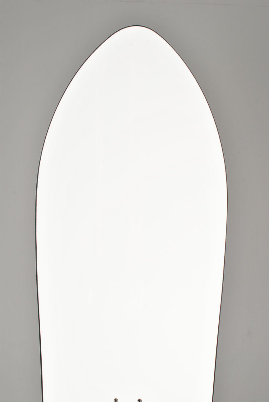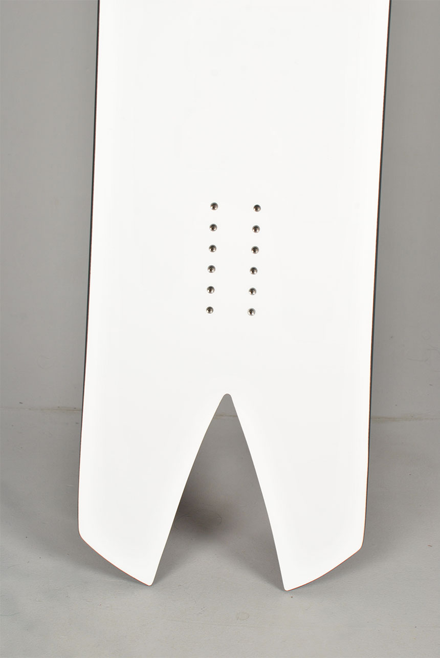 The wide frame, setback and taper offer maximum float and a relaxed riding experience in deep powder. The extra width also reduces toe and heel drag on groomers, enabling you to go low when carving. The deep swallow tail is playful when releasing out the back in soft snow, while also allowing a tighter radius at the end of your turns.