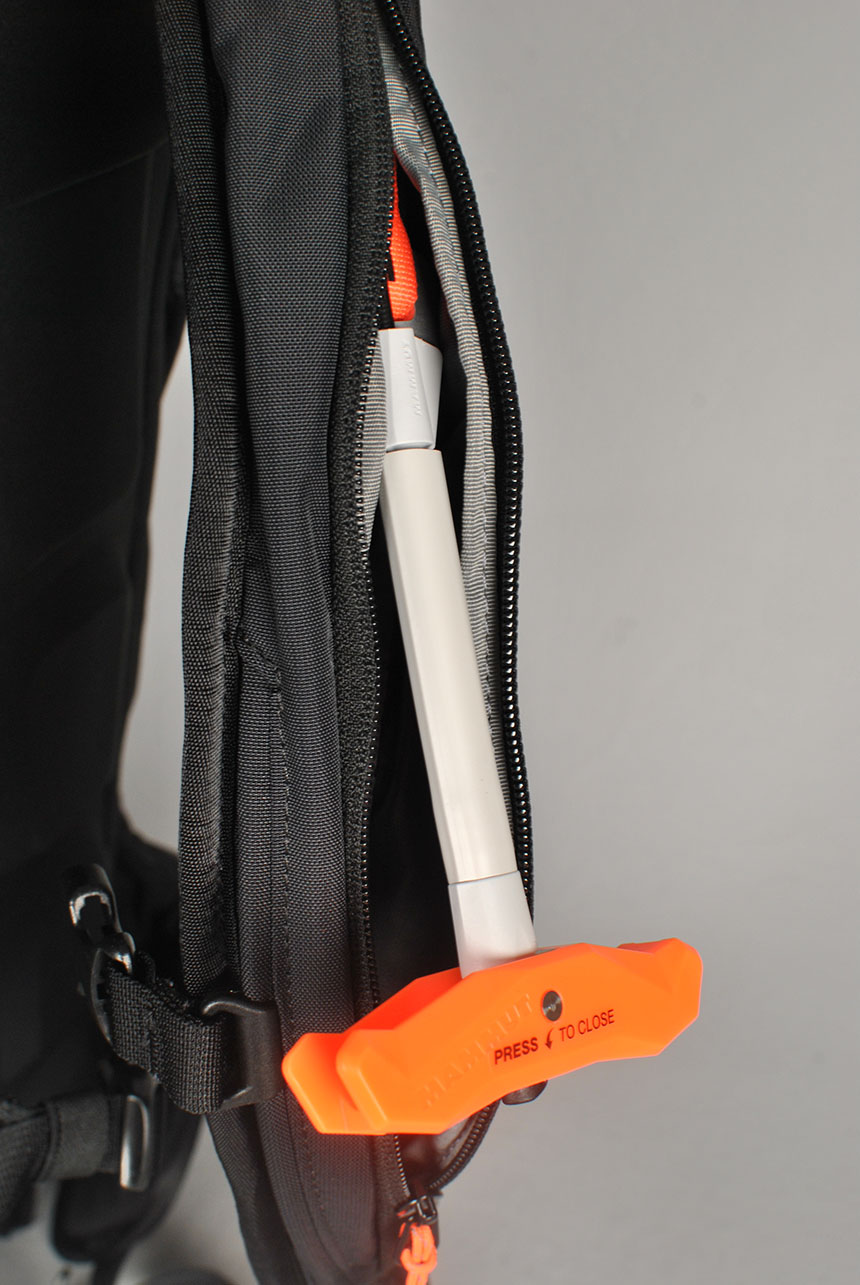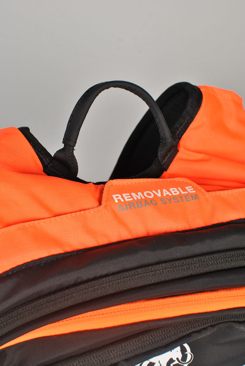 - Backpack contains Removable Airbag System 3.0 (compressed air cartridge not included): dependable, light and compact system with height-adjustable deployment handle and vibrant orange airbag balloon. System transferable between compatible backpacks.
