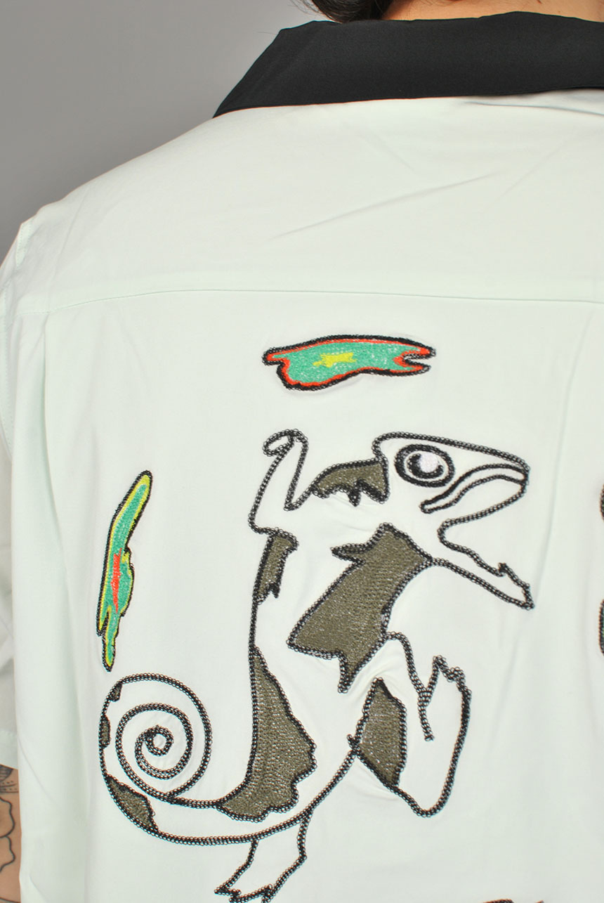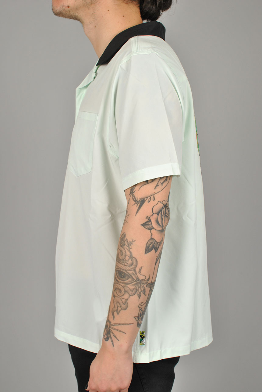 Take bowling alley style to the pavement. This retro, button-down shirt combines lightweight fabric with a breezy cut that doesn't hinder your movement. And check out the embroidered chameleon on the back designed by Alexis Sablone. Central to skateboarding and its global community, the graphic ties back to the Federation Agnostic crest and its ethos of endless variety and boundless individuality.