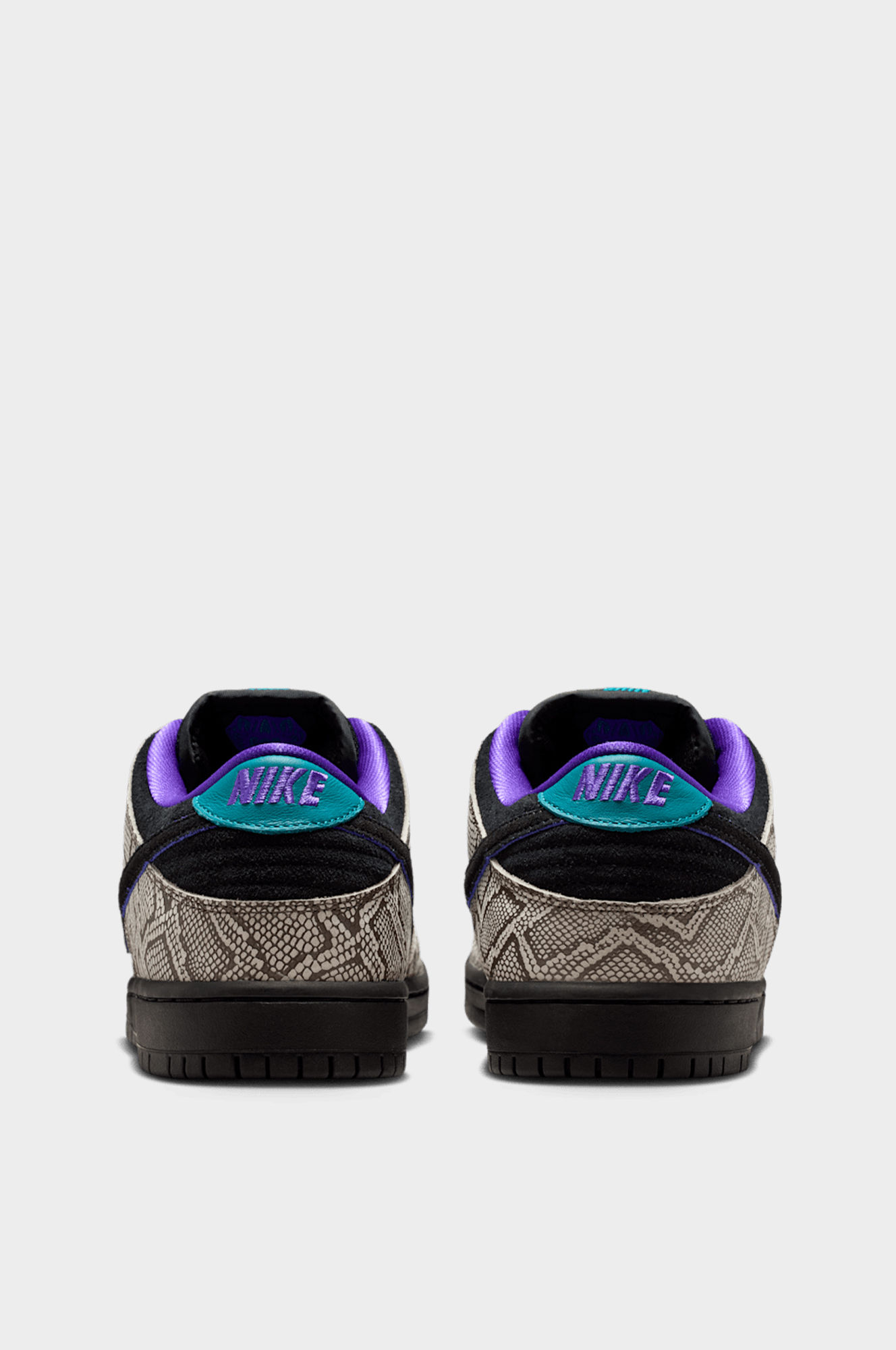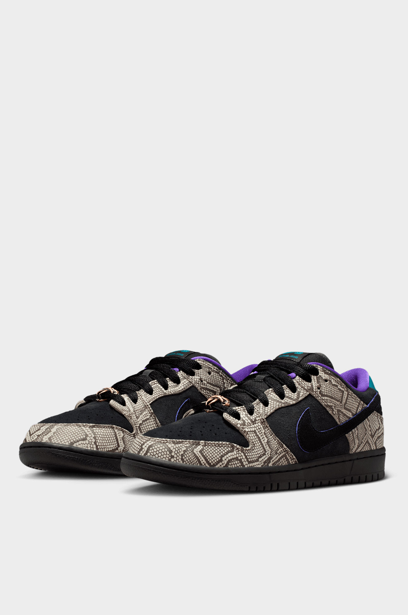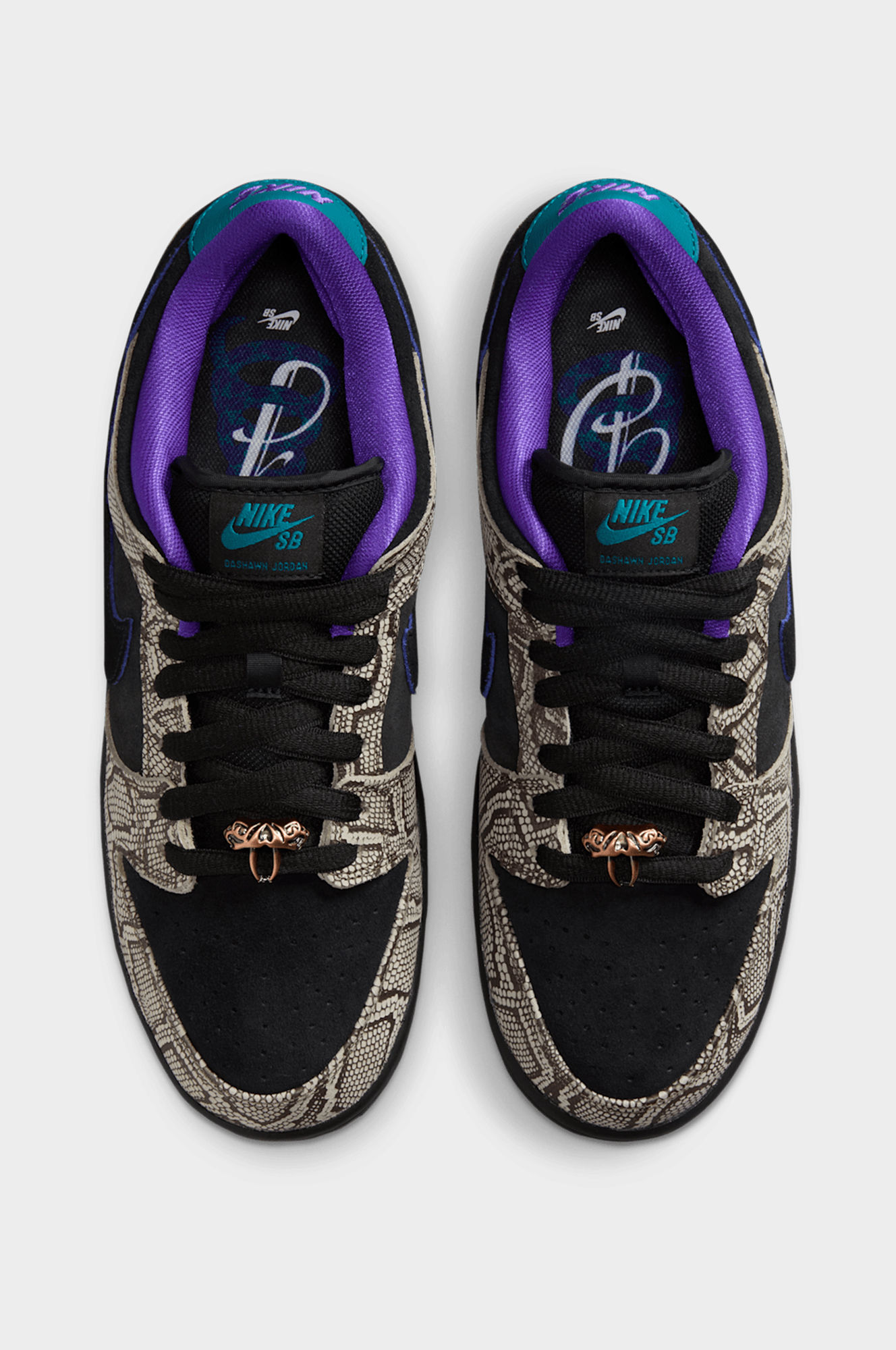 Dashawn Jordan brings the energy every time he's on his board—and he does it in Dunks. This time he brings a hometown spin to his favourite skate shoes with Southwest-inspired textures and colours. A faux-snakeskin upper channels the diamondback rattlesnakes native to Phoenix, highlighted by Turquoise and Deep Purple jewel tones at the tongue and heel. Fanged copper dubraes add the finishing touch.
