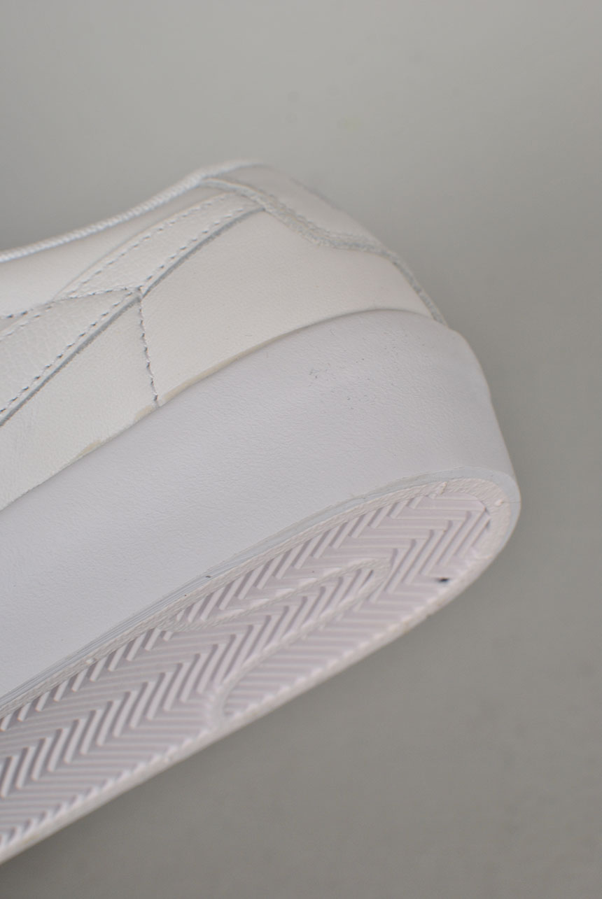 Higher taping between the midsole and the upper adds durability.