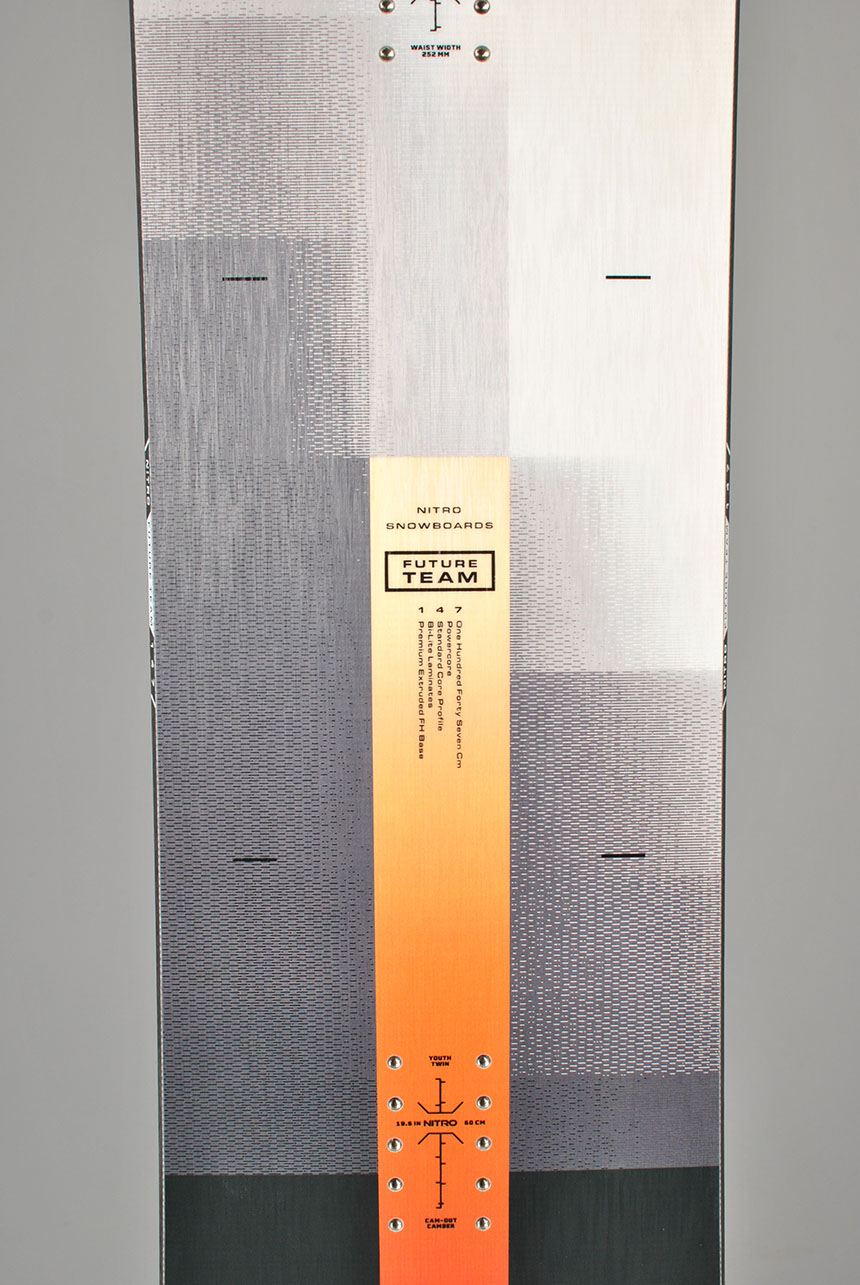 The Future Team snowboard is the next step up from our flat-out Ripper board series. The Future Team´s Cam-Out Camber provides the young guns with the response and snap they need for their ever-progressing skillset without sacrificing the fun, forgiving, and playful flex required for good times all over the mountain. If you or your protégé are looking for a board that will provide all the power and performance the big board offers in a smaller package, look no further than the Nitro Future Team snowboard!