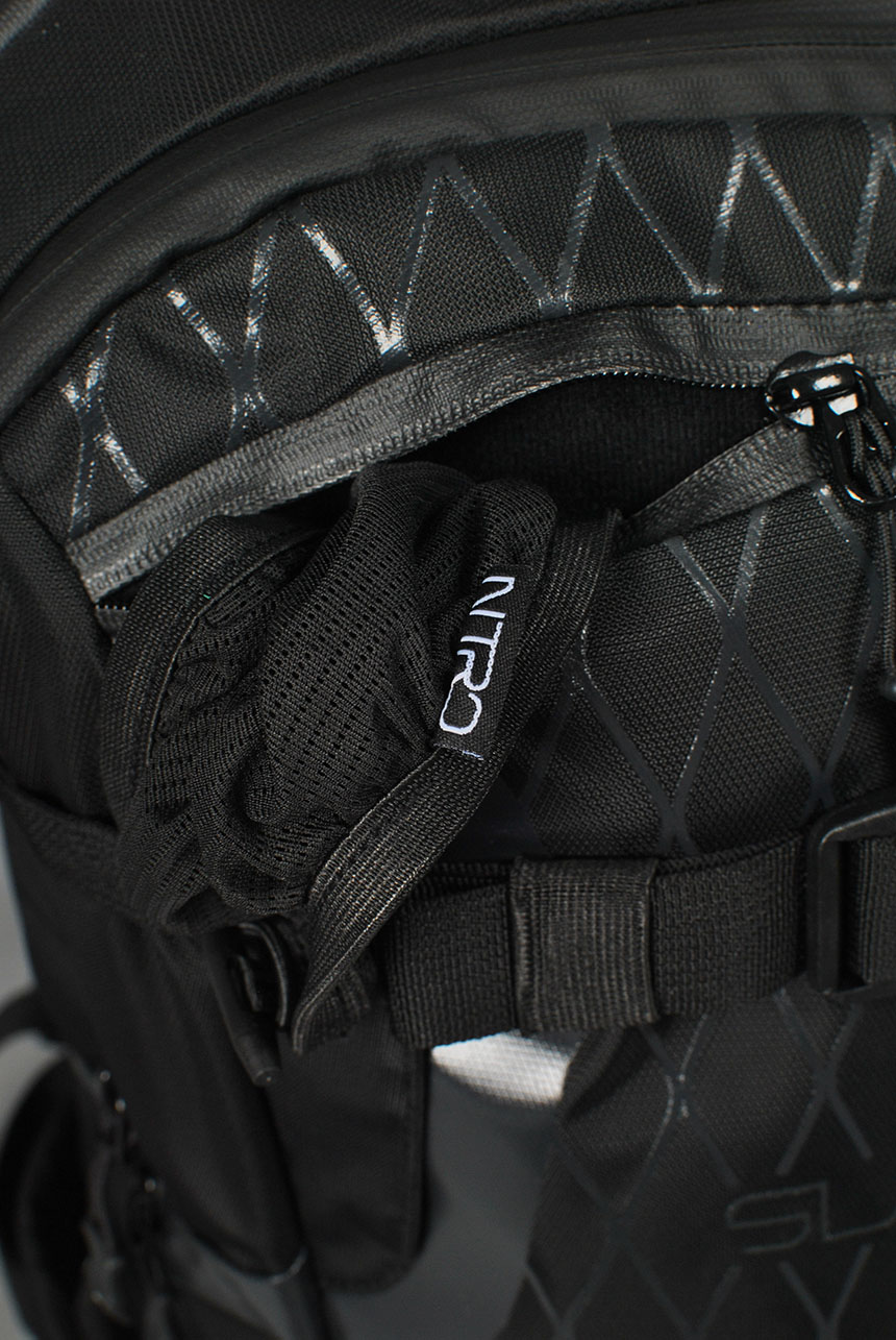 From peak to park – this bag offers it all with its vertical board carry, backcountry safety gear organisation pocket, external hiking pole stashing and gear loops, internal dry gear sleeve, fleece lined goggle sleeve, and hydration compatible capabilities. When you are snowboarding with a backpack you want the most seamless and comfortable fit, which is what we focused on here by adding the size adjustable carry system with CROSS_WINDS™ ventilation, compression straps, and The Koroyde EOP 1.0 back protector for added support, breathability, and protection from bag to body. This is our team riders dream snow pack because it has everything you need for AK lines, to weekend park days.