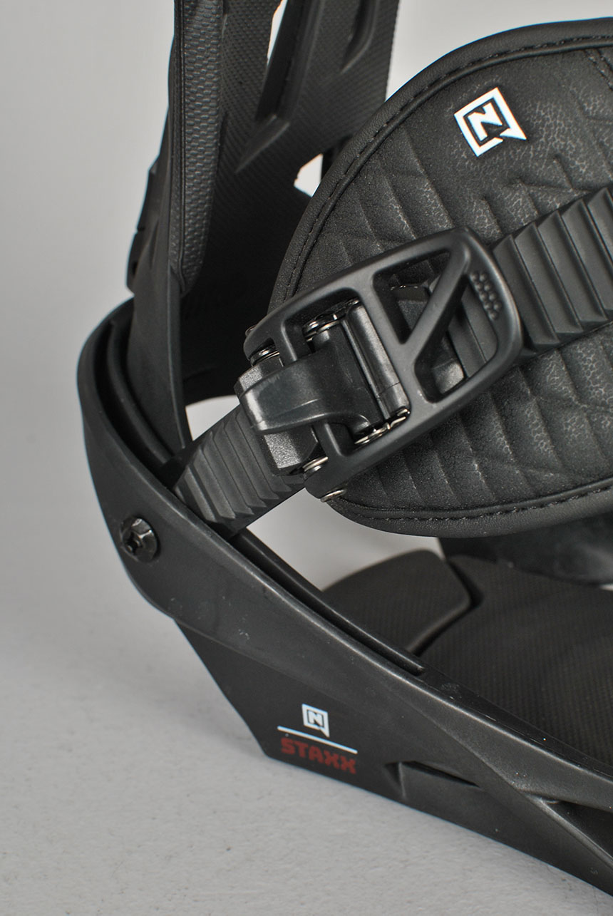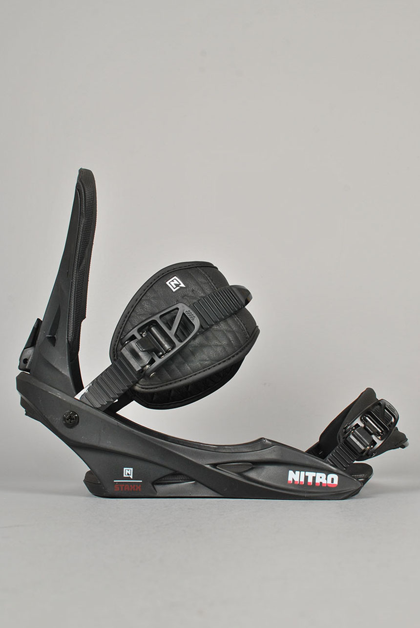 The Staxx provides a friendly flexing design coupled with mountain-tested technologies at a minimum weight, with a 100% focus on maximizing comfort for effortless progression with confidence and style on and off the groomed runs.The Nitro Staxx snowboard binding provides user-friendly features and tools to help riders of all levels to accelerate through the progression curve with ease and confidence. The medium-flexing A-Frame Base and Hammer Highback deliver a seamless flex and fit at a minimum weight, while the Perfect Fit Ankle Straps and EVA Dampening provide all-day comfort. The Aluminum Speedwheel Buckles and B.E.S.T Convertible Toe Strap allow you to strap down and customize your fit to your boot with confidence. In addition, the Staxx snowboard binding is engineered to be reliable year after year and let you ride longer in comfort!