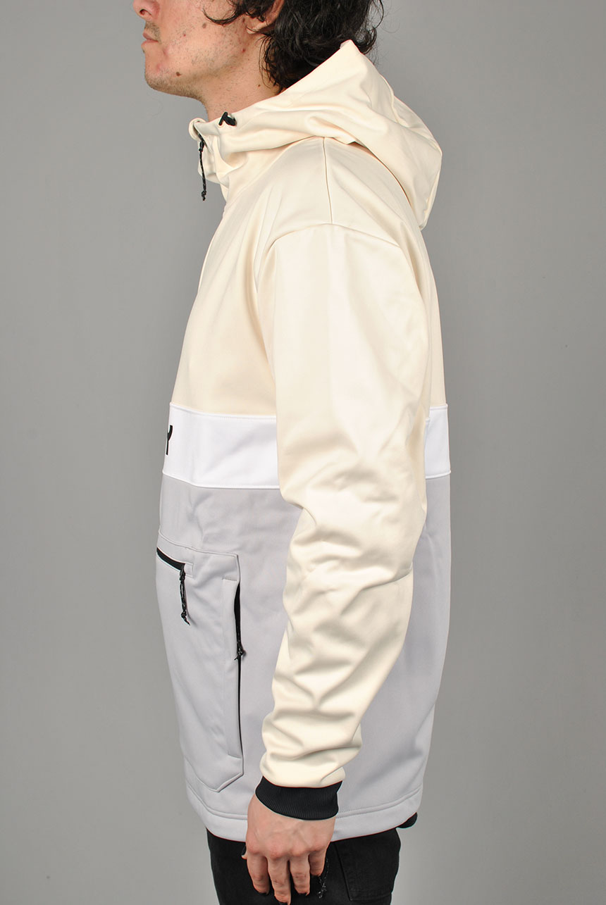 Go big. And look good doing it. The TNP Nose Grab Softshell Hoodie is the ultimate in all-mountain comfort, cool and technical cred. A pullover anorak with side zip entry, it has the soft flexibility of your favorite sweatshirt but with FN Dry10K™ laminate and DWR to keep you dry and warm. A lined kangaroo pocket with zips lets you easily stash your stuff. Details like ribbed cuffs and an adjustable cinch hem at the waist means customized fit. Pull on, drop in and own the hill.