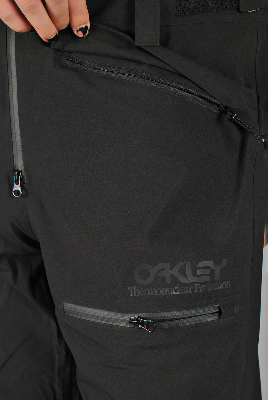 TNP Shell Bib har hentet inspirasjon fra den ikoniske Thermonuclear Protection-serien med sine sterke farger, modige design og historiske Oakley-logoer, og den sørger for at enten du kjører snøbrett eller ski, så gjør du det med stil og god komfort. Integrerte seler med innvendige klemmer og toveis glidelås på midten sørger for overlegen funksjonalitet. Innvendige lufteåpninger på låret for ekstra kjøling ved behov. FN Dry™ 10K-laminering og O-Protect DWR-teknologi sørger for både fuktsperre og pusteevne, og innvendig snøsperre og ankelkiler med glidelåslukking gir ekstra beskyttelse mot snøen.
