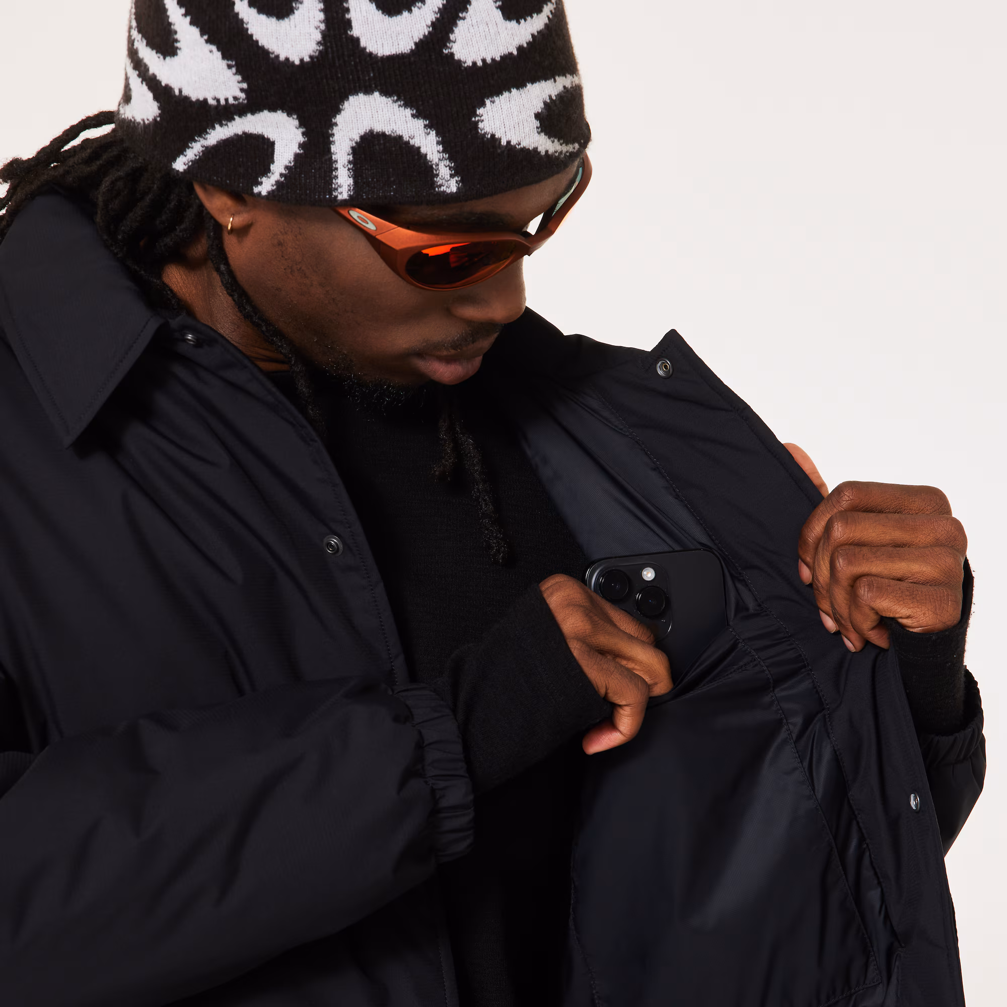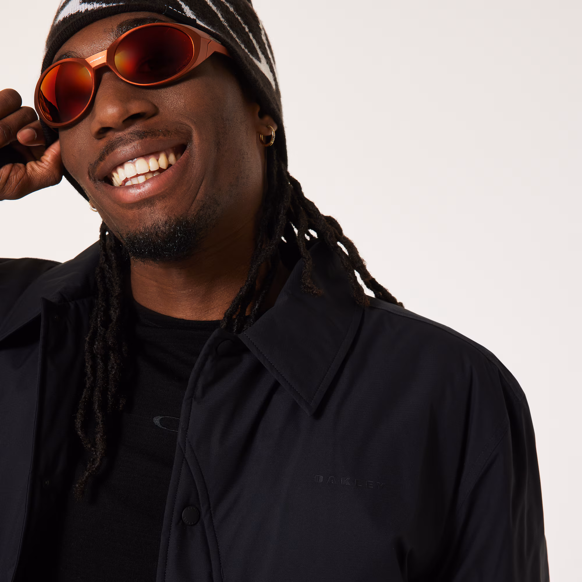 Flerbruksjakke i nylon, laget av vannavvisende DWR 5K-stoff. Den har en pen skjortekrage og festes med synlige trykknapper nedover midten. Den har en uformell, boxy passform og snøring i falden for å justere midjen etter ønske, komfortable elastiske mansjetter og utvendige bryst- og håndlommer samt en innerlomme til lommebok eller telefon. Med syntetisk polyesterisolasjon som holder deg varm og tørr selv på de kaldeste dagene, og en praktisk innvendig kleshengerløkke og en opphøyd Bark-logo på brystet.