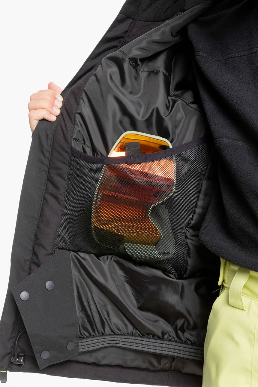 Pockets: Sleeve pass pocket, 2 handwarmer pocket, Internal media pocket, Internal large mesh pocket