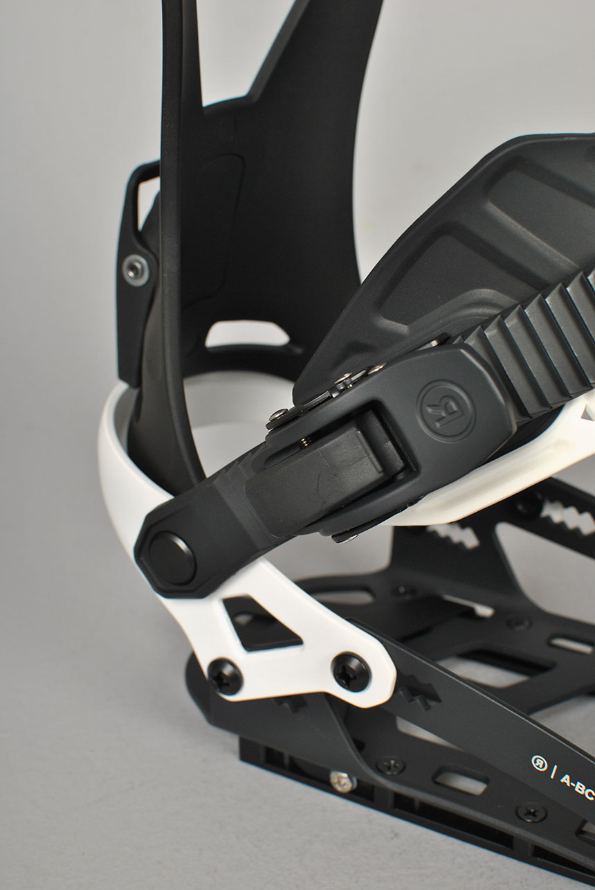 Transition from "tour mode" to "snowboard mode" easily with the simplest lean block adjustment in the industry. Push of a button, it's that easy. Of course, these bindings come packaged with the Speed Rail touring bracket (toe piece) as well as the dual height heel risers with heel lock. Toe and ankle straps are consistent with the rest of the binding line, using our reversible ankle strap and Minimalist Toe Strap 2.0. All the RIDE binding parts you trust, now built for walking up a hill or mountain. Granola not included.