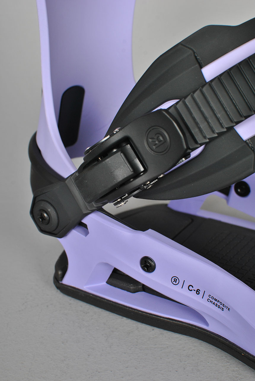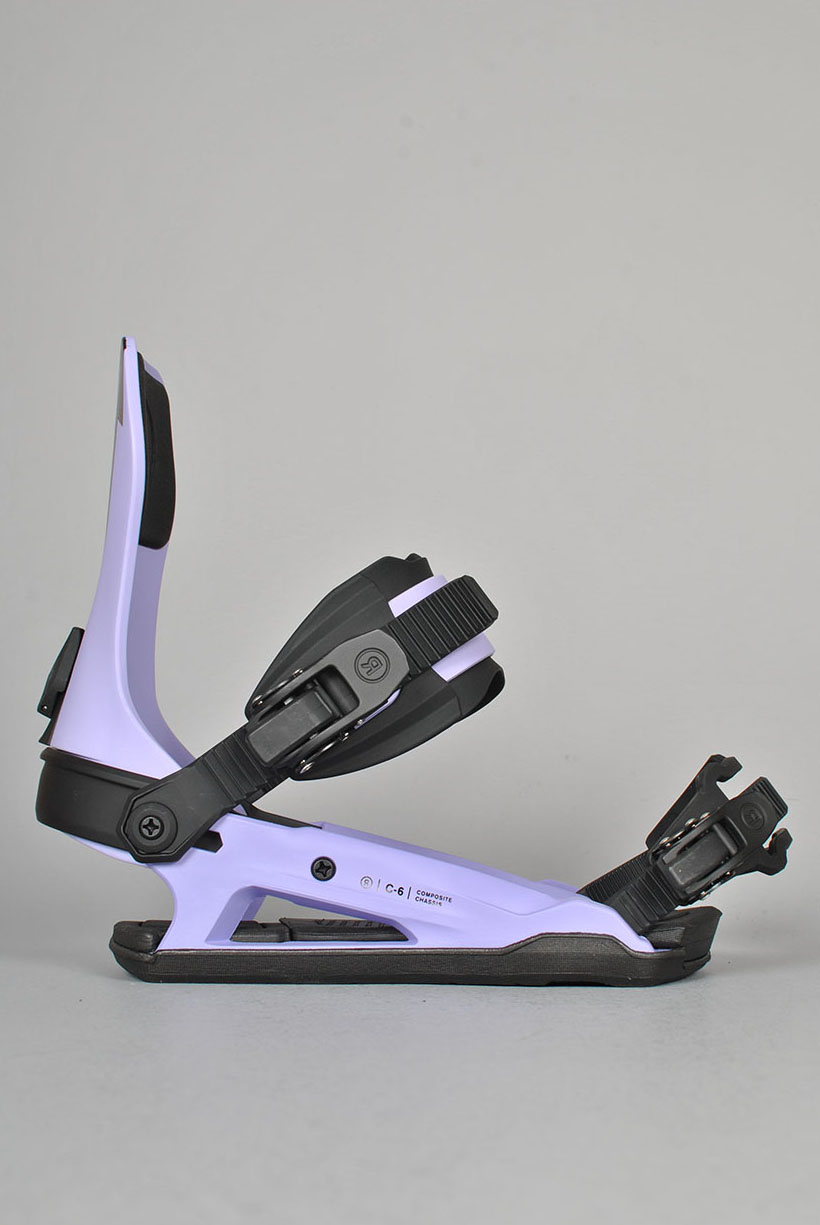 The C-6 is designed for all-around performance for the rider that wants the smooth and damp feel of a composite tray underfoot. The Two-Piece Ankle Strap contours to the shape of your boot and provides durability without extra weight. Urethane in the Slimeback™ Highback provides a smooth ride and allows for maximum lateral mobility. The C-Series Performance Chassis pairs an aluminum heelcup with a glass-filled nylon base tray. The aluminum heelcup provides the feel and durability of aluminum where you need it (heelside response) while the composite tray offers a damp and responsive ride. The canted footbed aligns your joints with a 2.5 degree angle while providing more leverage over the tip and tail of your board. Take this binding anywhere, any conditions we promise it won't disappoint.