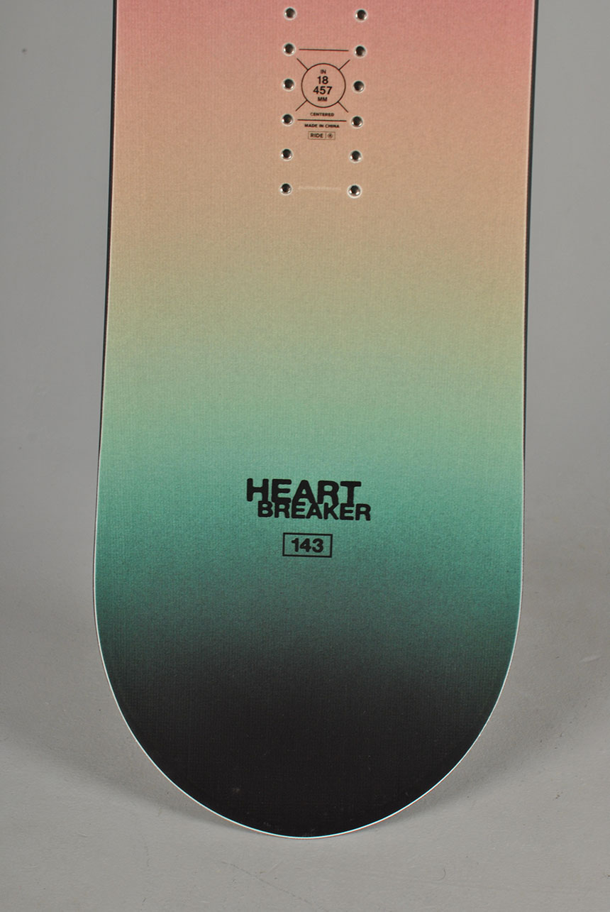 The Heartbreaker is made for all mountain progression. The twin hybrid rocker combines camber underfoot with rocker at the tip and tail for the perfect combination of snap and easy turn initiation. A Quadratic Sidecut improves turn initiation/exit and edge grip. Slimewalls® provide a smooth ride and increase durability by absorbing impact. The Heartbreaker is a soft-flexing all-mountain board for riders of all ability.