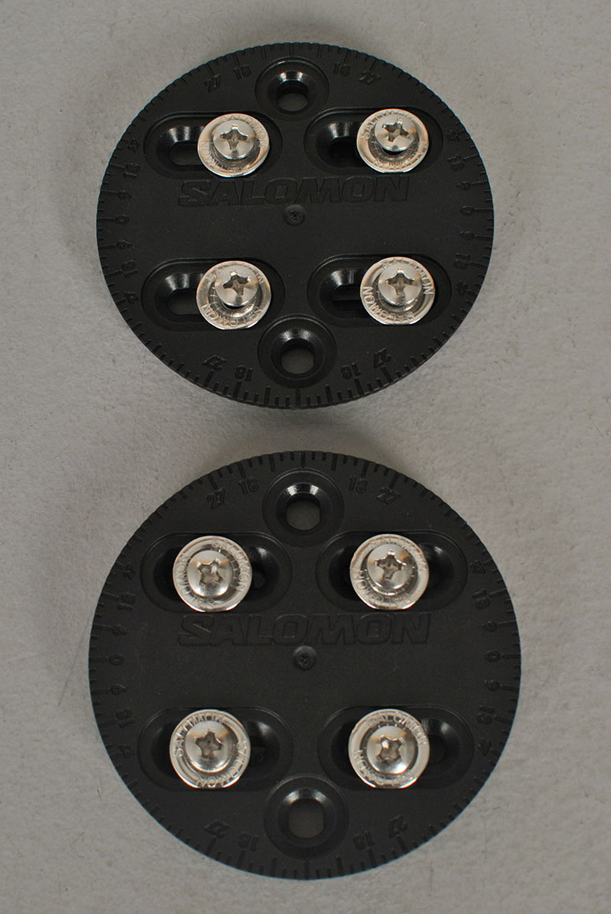- IMS: Integrated Mounting System (IMS) er Salomons patenterte system som holder plateskruene på plass når du justerer bindingene eller når du bytter brett.