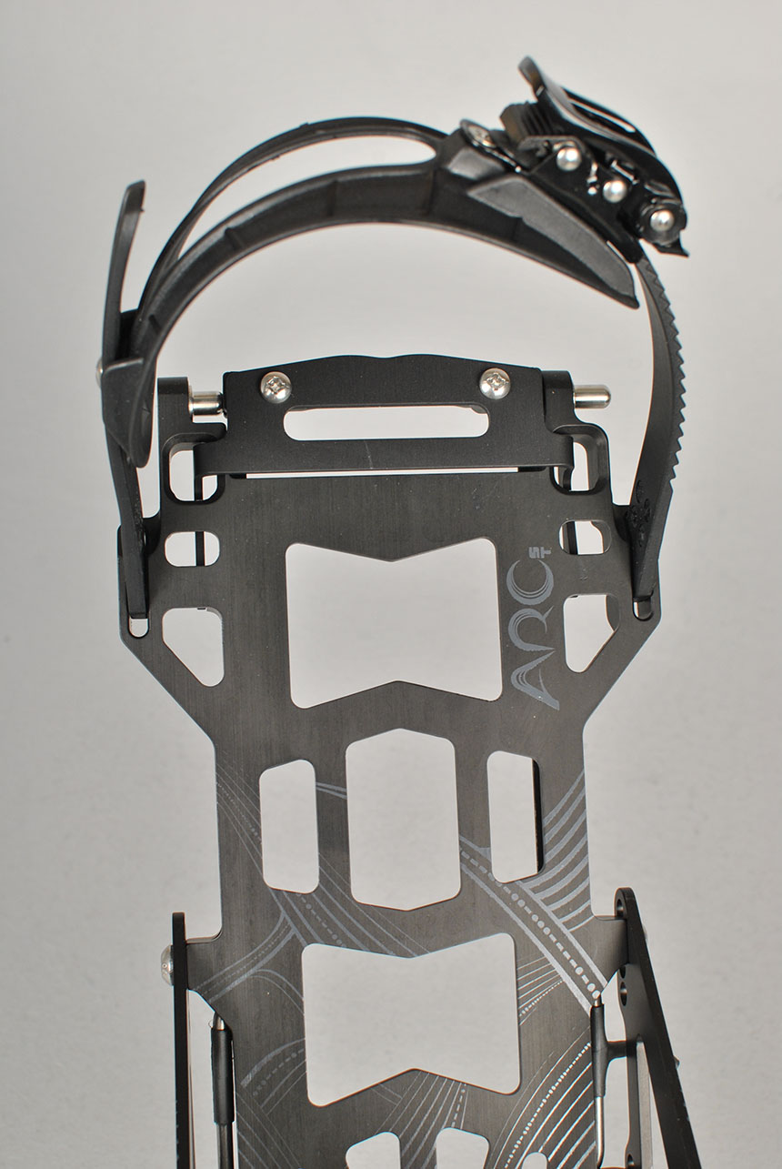 The Arc splitboard binding is lightweight for long tours, epic overnighters, trees, and steeps. The baseplate is CNC machined with maximum cutouts to shave weight yet maintain strength and performance while incorporating our industry-leading Tesla T1 binding anatomy. All Arc bindings feature a medium flex version of our Rip ‘N’ Flip highbacks and smaller profile Pillow Line ankle straps with flex windows for a nice surfy ride down. Every piece of this binding is made in-house with the exception of a few screws and the buckles!