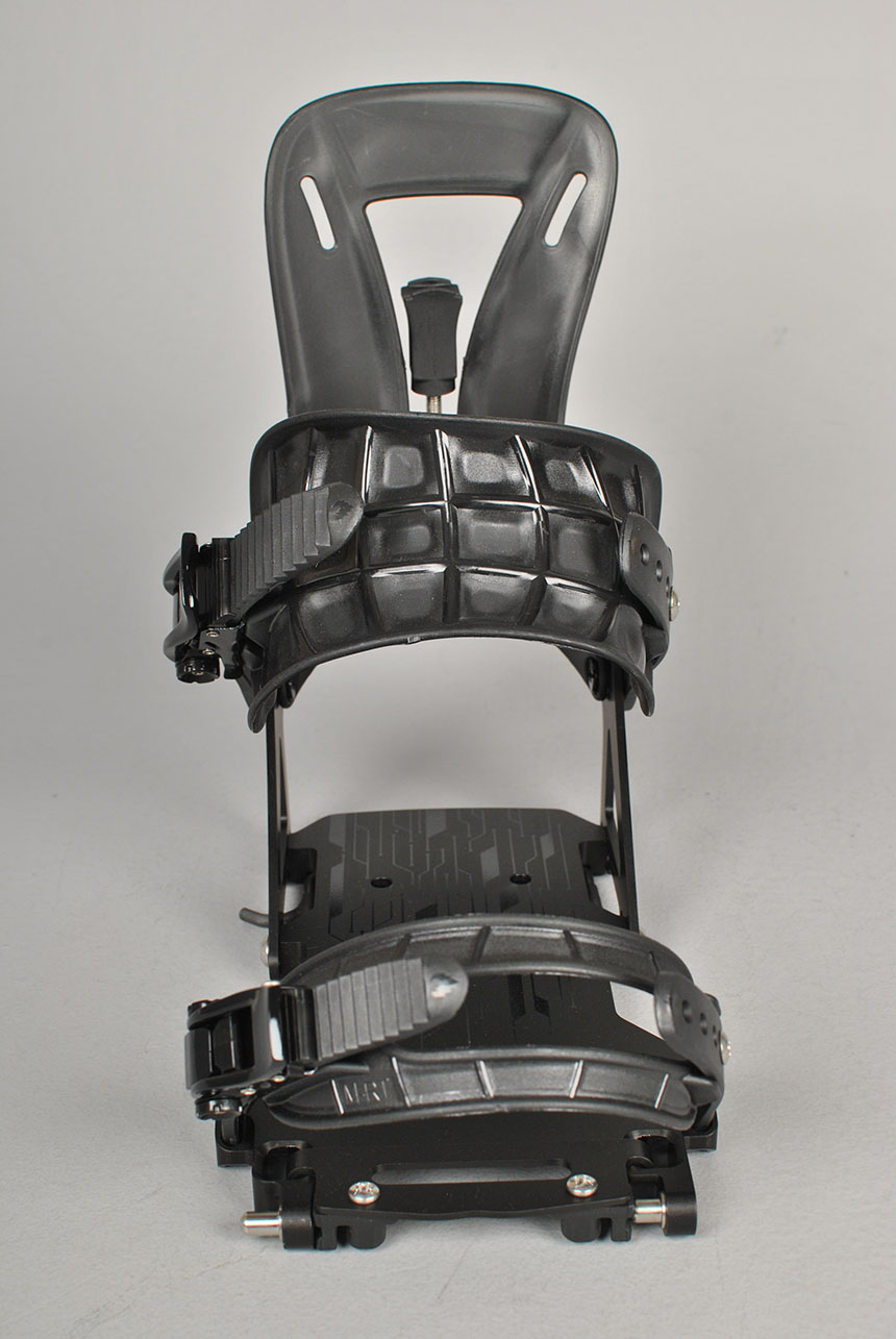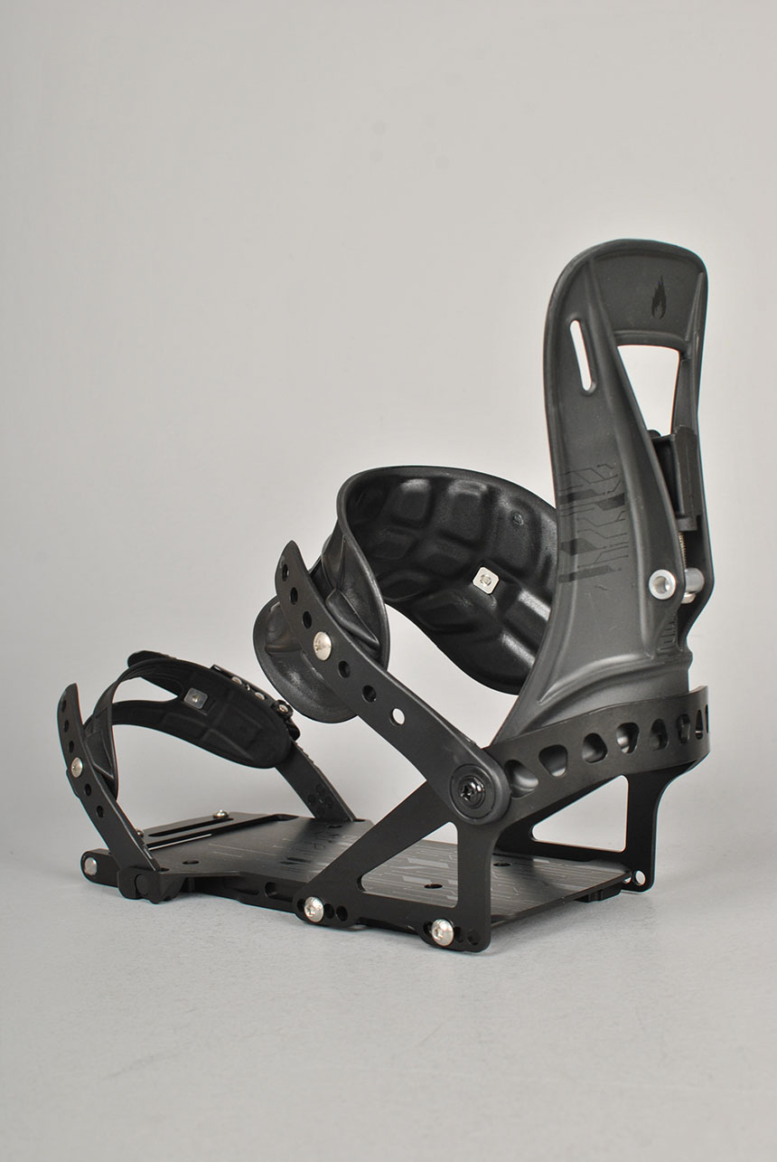 Ladders and adjusters are produced in-house with unique thermoplastics that maintain flex over a wide temperature range, performing well on spring tours as well as sub-zero suffer fests. All straps incorporate Burton's time-tested buckles