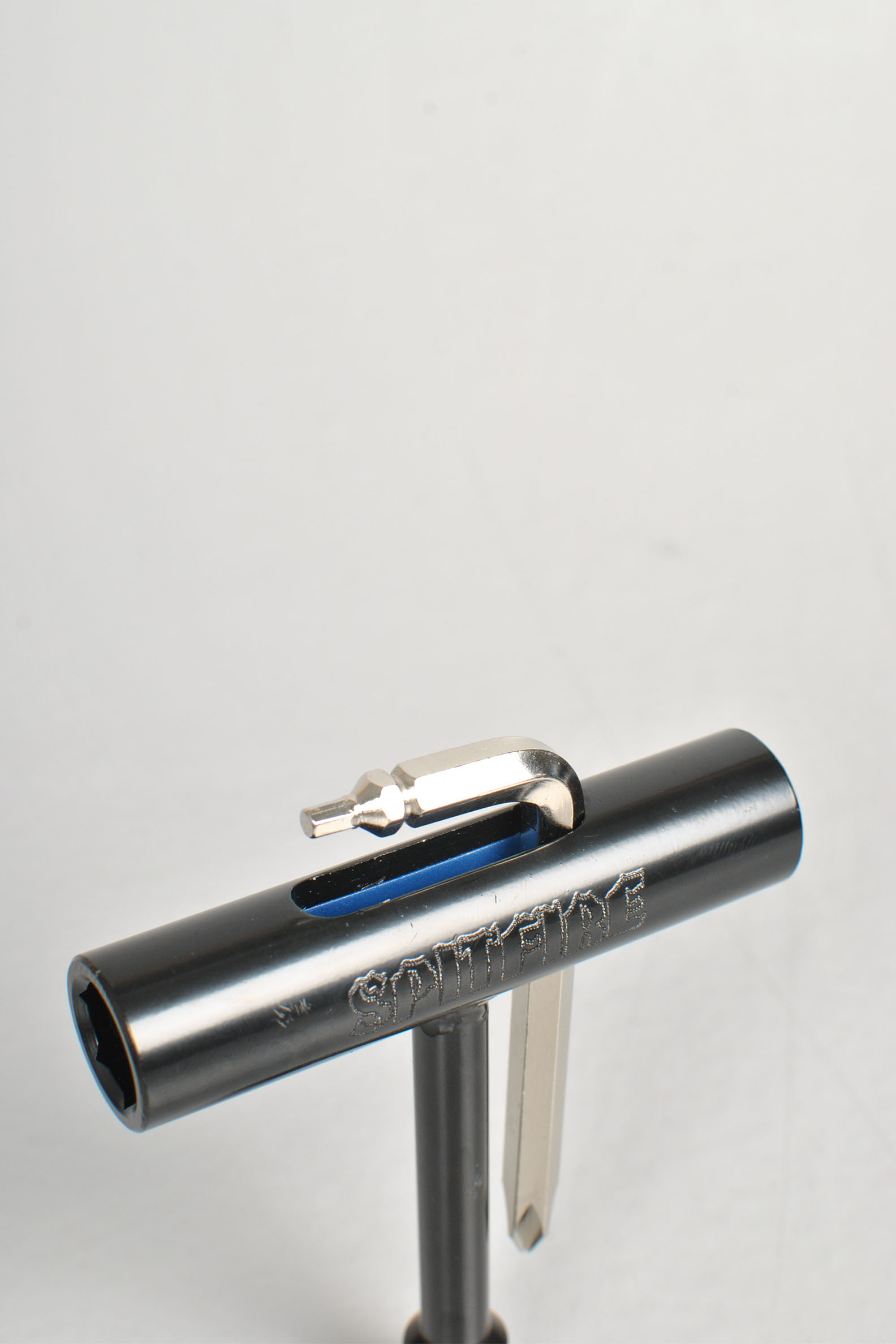 The Spitfire T3 Tool is your all in one skate tool. You get sockets for the axle, king pin, and the hardware. Removable Allen and Phillips screwdriver. Lightweight and portable, the T3 goes where you go with no hassle. Spitfire logo embedded on tool.