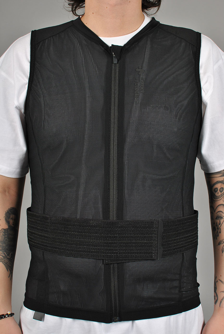 Designet med elastisk mesh for å passe ulike kroppstyper og en myk Lycra-krage for ekstra komfort. Sertifisert i henhold til EN 1621-2:2014, Level 1-standard.