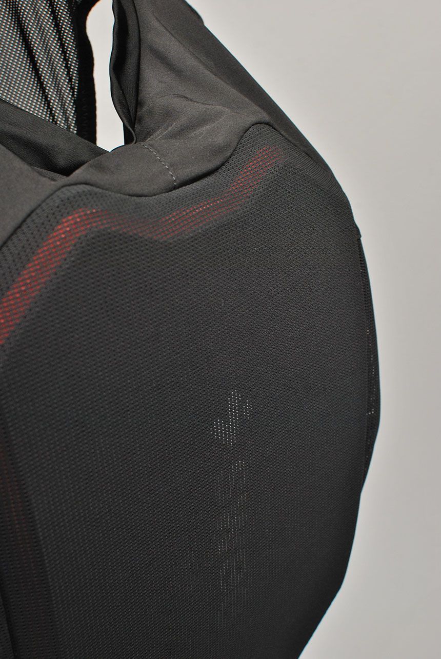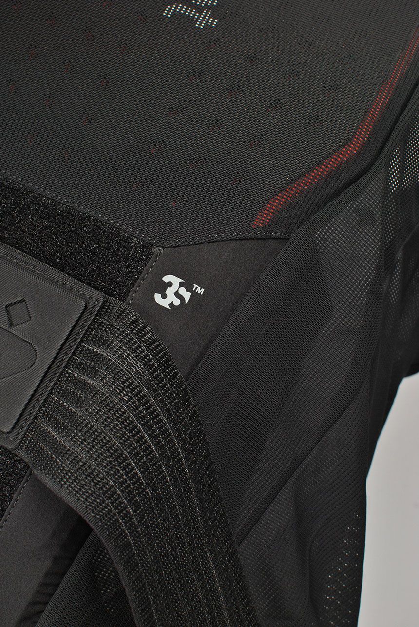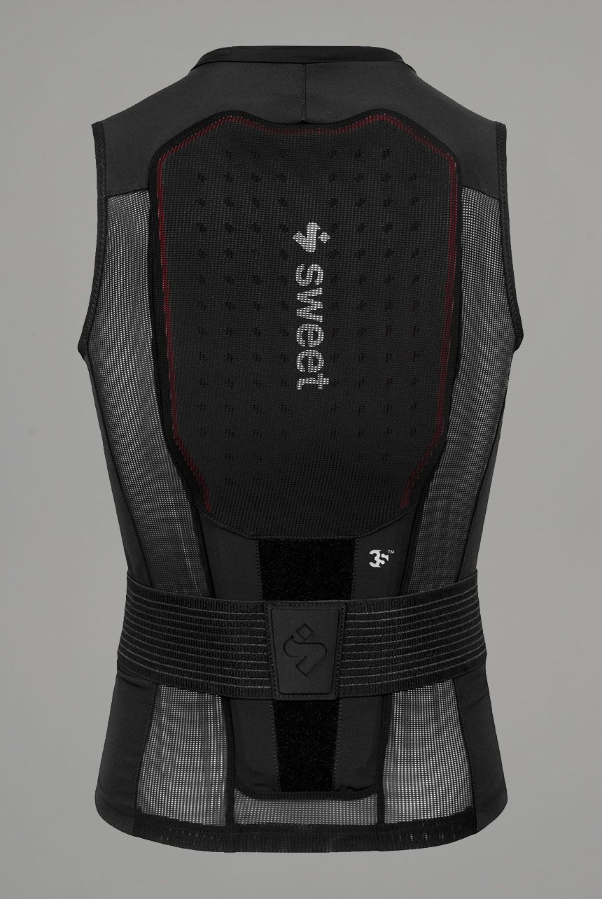 - 3S (Sweet Shock Shield) viskoelastisk skumpolstring er ergonomisk formet etter ryggens konturer med tre beskyttende lag over de mest kritiske områdene og to lag i korsryggen for økt mobilitet