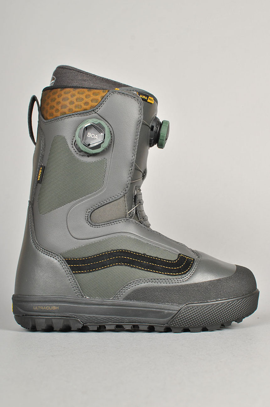 Featuring comfort, control, and style like only Vans can offer, the Aura Pro delivers on its versatile, hardworking reputation as the BOA® boot built to perform in all environments. It features a dual-zone Custom Focus BOA® Fit System for unlimited, on-the-fly micro-adjustability backed by the customizable comfort and heel hold of the Custom Slide Guide. Add in the V2 UltraCush™ Smartwool® liner and V2 Waffle Pro™ outsole, and the Aura Pro will exceed your expectations of comfort and performance.