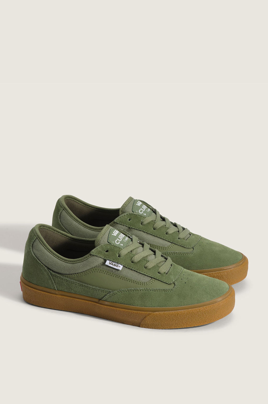 The uppers feature a mix of leather, canvas and synthetic materials with a gusseted tongue locking down your foot, reinforced duracap underlays and a custom sidestrip design. Underfoot the Curren model boasts a revised bottom tread pattern with a reversed Waffle tread using Vans SickStick rubber compound.