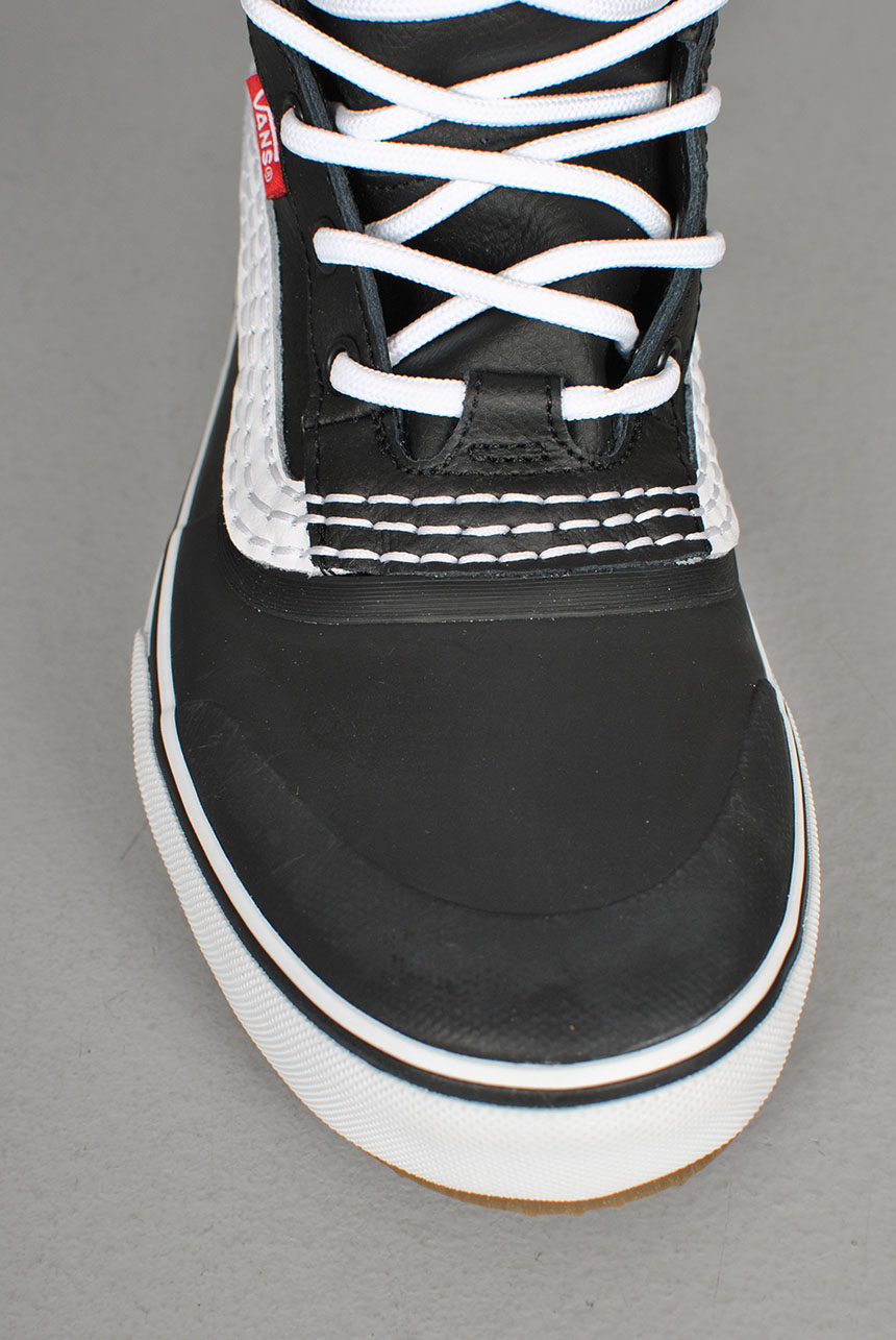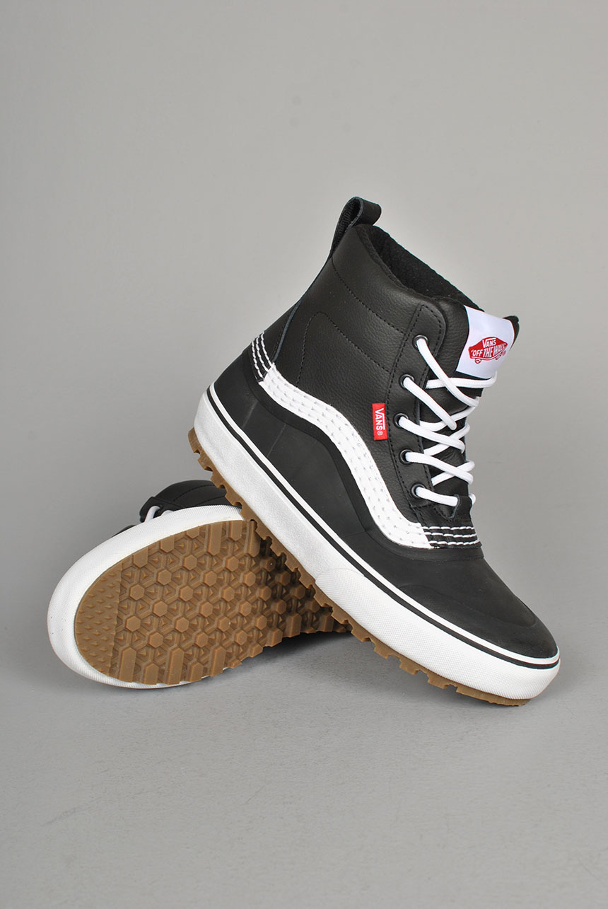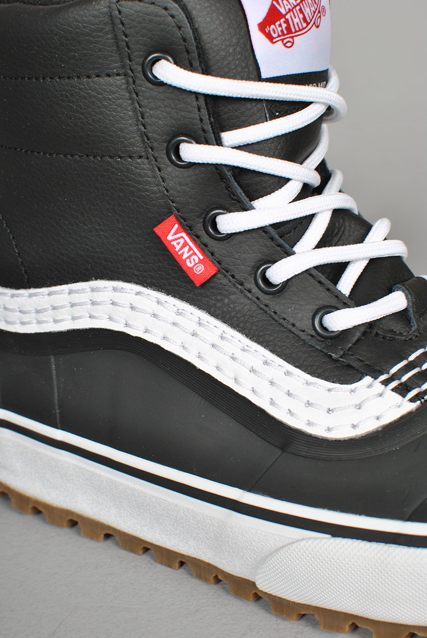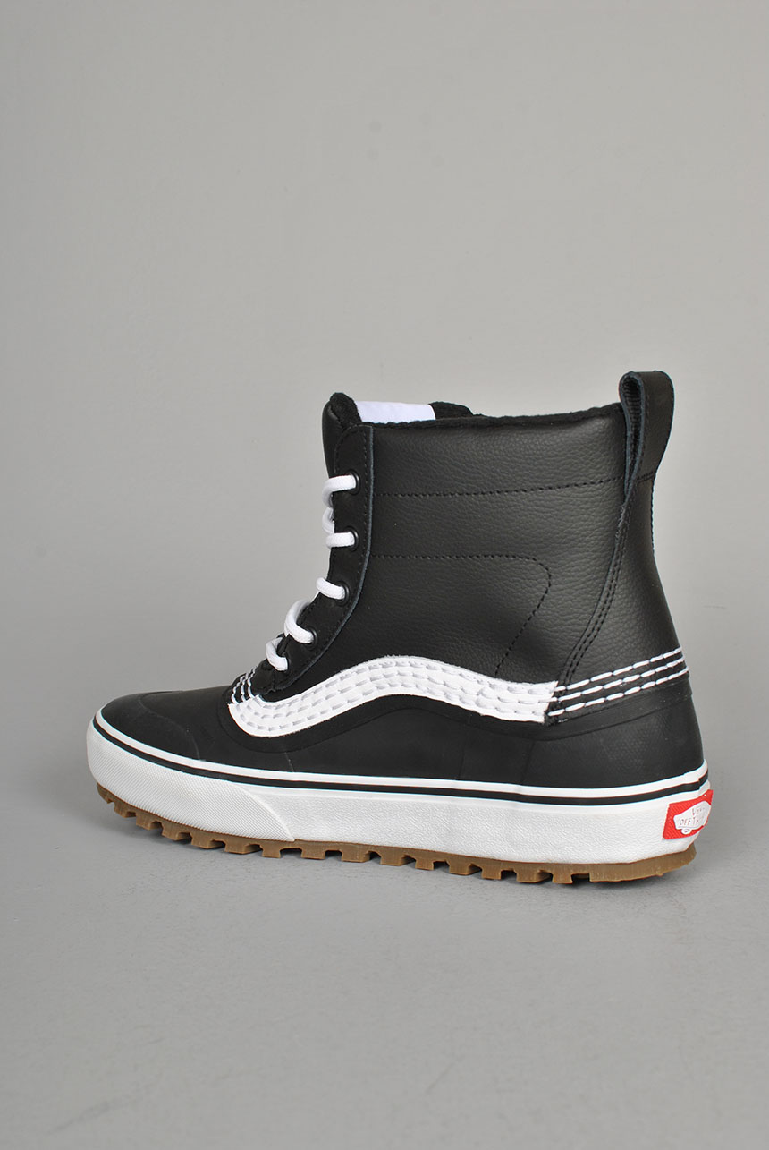With a waterproof vulcanized lower, waterproof seam-sealed construction, a Standard Snow MTE outsole, and a 100-gram weight insulation package, classic Vans style and day-to-day winter weather footwear have finally converged. This mid top boot is made with leather and synthetic uppers.