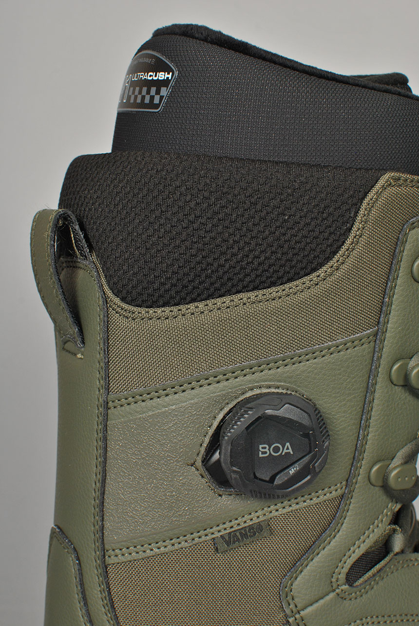 Utilizing both the Vans Hybrid BOA Fit System and traditional lacing,