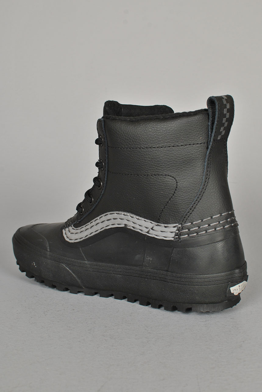 With a waterproof vulcanized lower, waterproof seam-sealed construction, a Standard Snow MTE outsole, and a 100-gram weight insulation package, classic Vans style and day-to-day winter weather footwear have finally converged. This mid top boot is made with leather and synthetic uppers.