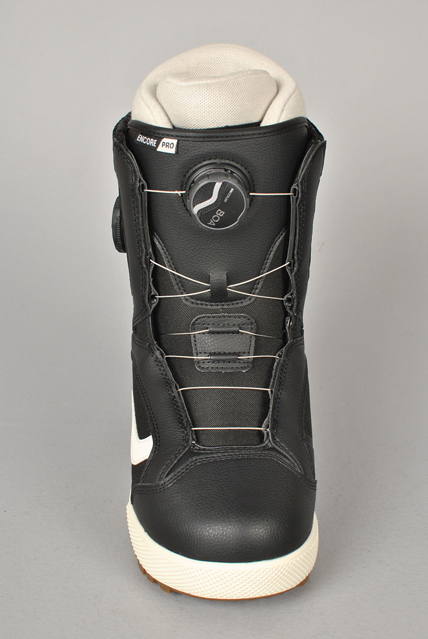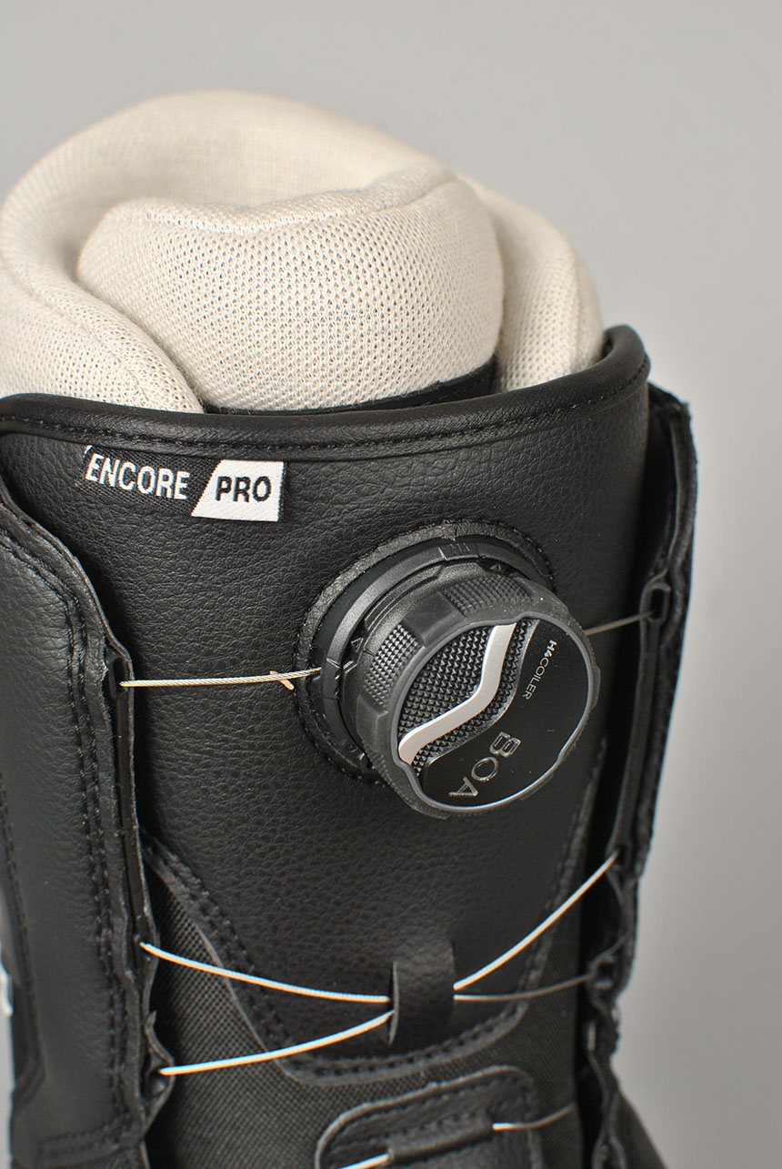 With timeless style, comfort, and dependable control in equal measure, the Encore Pro is an advanced and versatile women’s-specific BOA® boot built to perform in all environments. It features our dual-zone Custom Focus BOA® Fit System for unlimited, on-the-fly micro-adjustability, backed by the customizable comfort and heel hold of the Custom Slide Guide. Add in the V2 UltraCush™ Smartwool® liner and V2 POPCUSH™ footbed, and the Encore Pro just might be your new favorite thing about snowboarding.