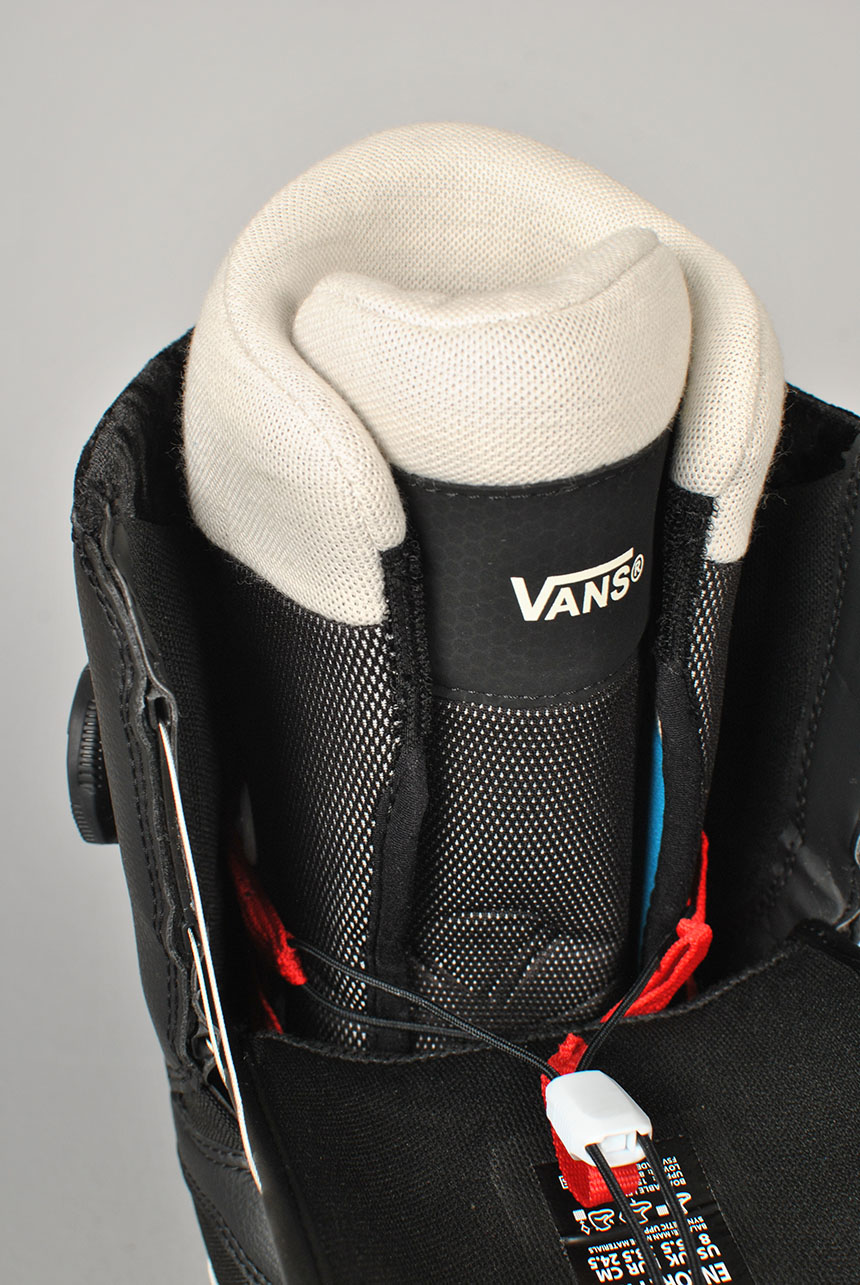 • BOA® CUSTOM FOCUS WITH CUSTOM SLIDE GUIDE – Custom Focus features a high-power coiler dial (H4) and a mid-power remote dial (M3v2) to control three zones of fit linked by Vans’ exclusive Custom Slide Guide, delivering concentrated fit around the instep area for focused heel hold.