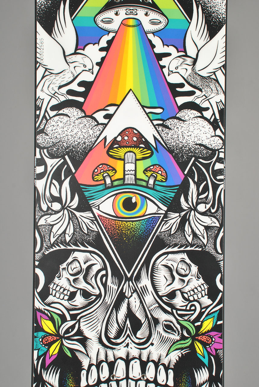 His board is built to ride the entire mountain, from ripping his local park to big mountain lines.
