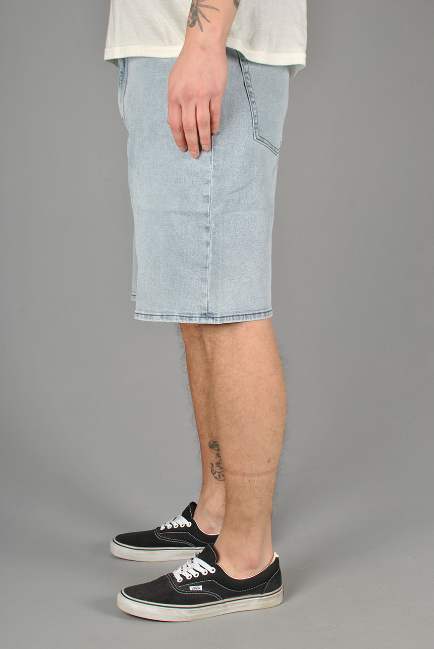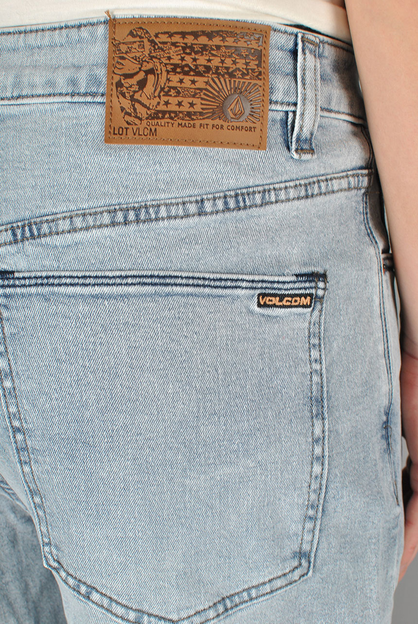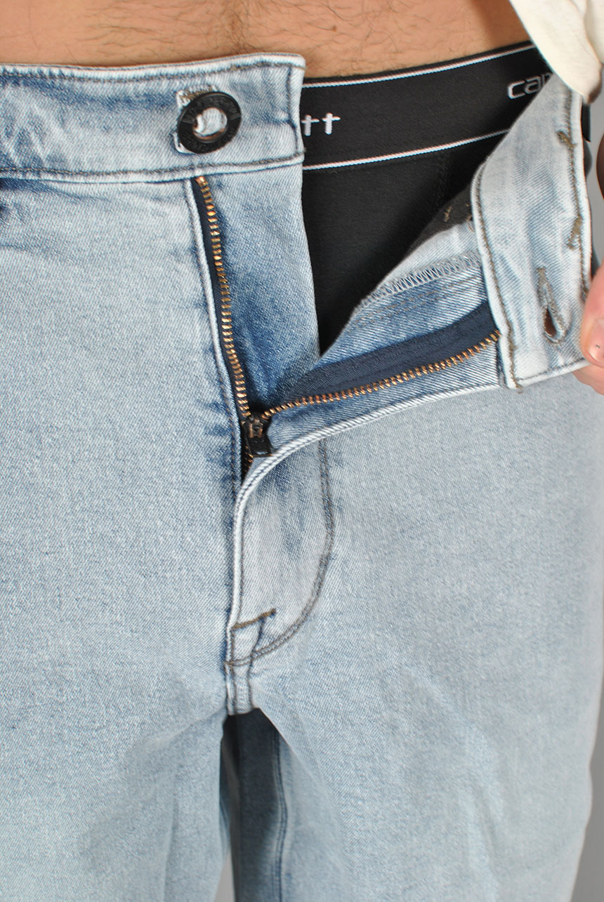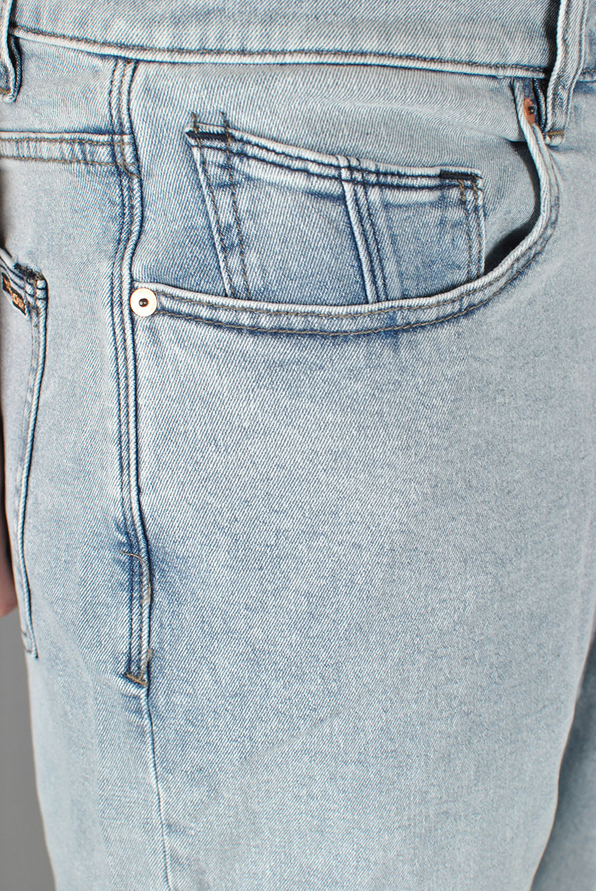 ● Heavily washed indigo denim with thigh sanding and heavy knee sanding with a light dirty tint