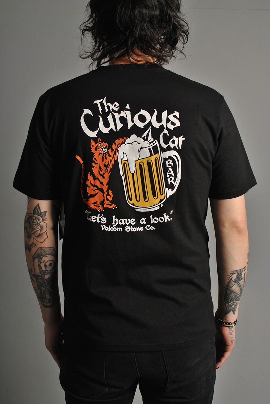 Our Volcom Curious Cat Short Sleeve Tee delivers casual comfort in a soft cotton/poly heather blend with a playful printed graphic and modern fit.