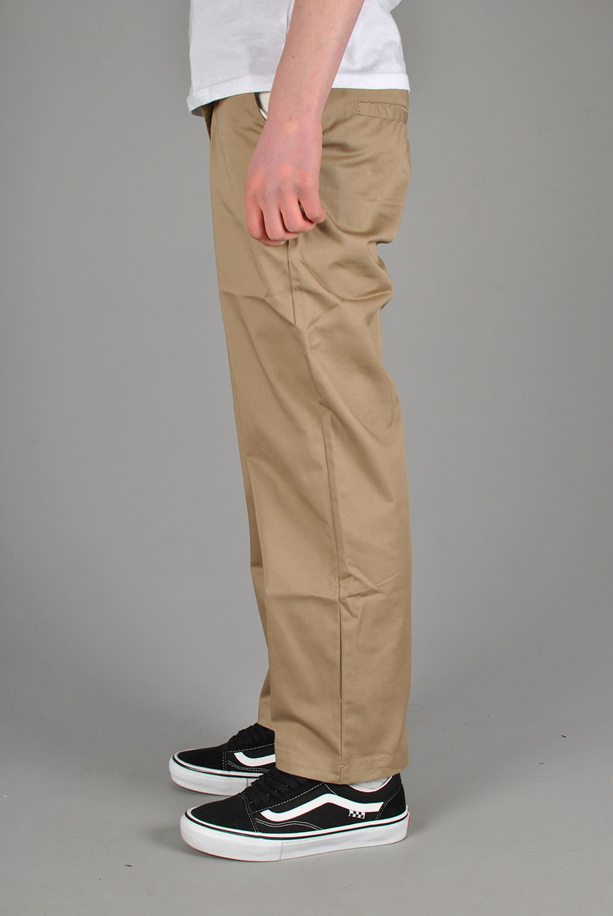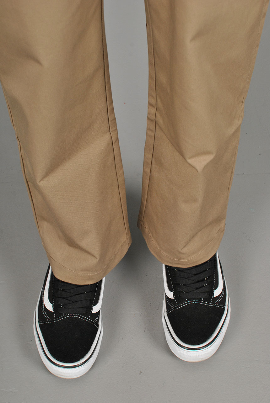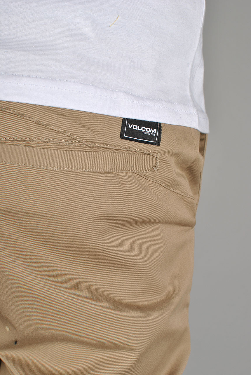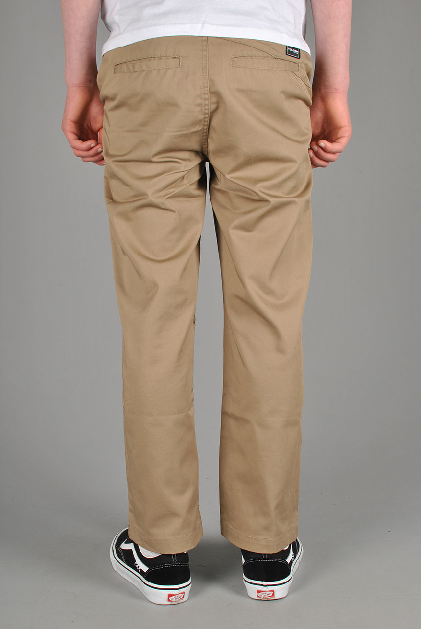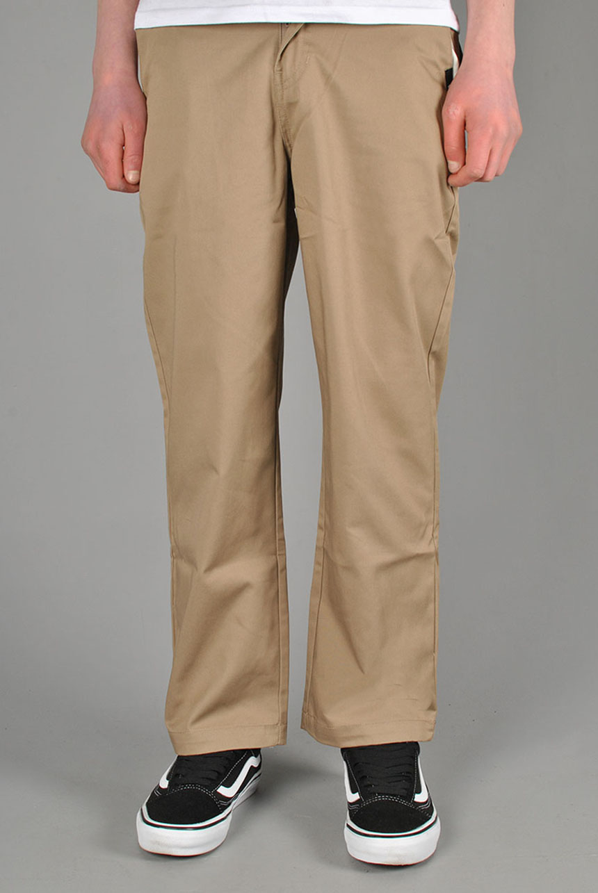 The Volcom Loose Truck Chino Pant is a chino pant for children and is made with a roomy fit. The trousers have a 16.5" leg opening and have classic chino elements such as slanted front pockets and inset back pockets. The Loose Truck Chino Pant is made in a durable cotton blend with recycled materials from Repreve. The trousers have sewn-on and embroidered logos.