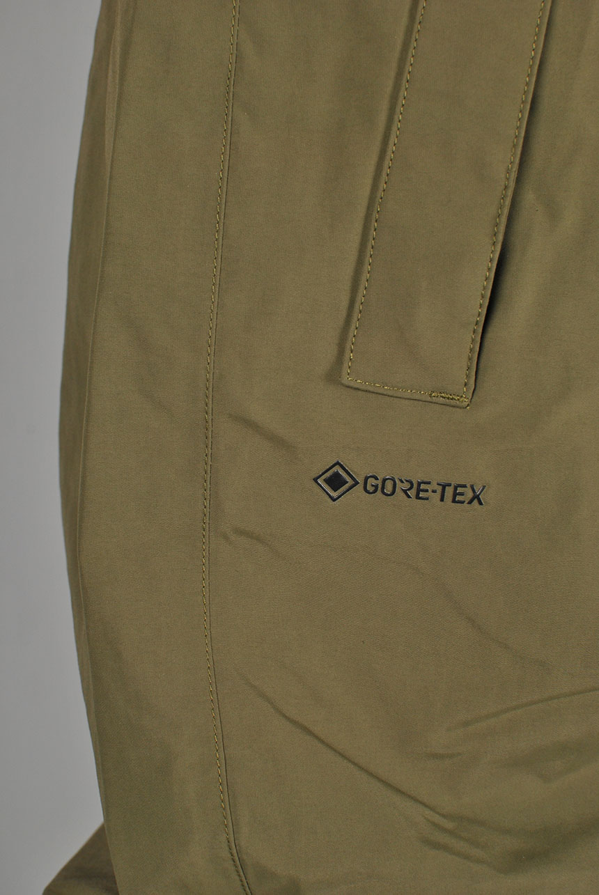 - GORE-TEX Recycled 2-Layer Nylon + PFCec Free, GORE-TEX Recycled 2-Layer Rip + PFCec Free Contrasts, V-Science Breathable Lining System, Fully Taped Seams, Baggy Fit, Relaxed Rise