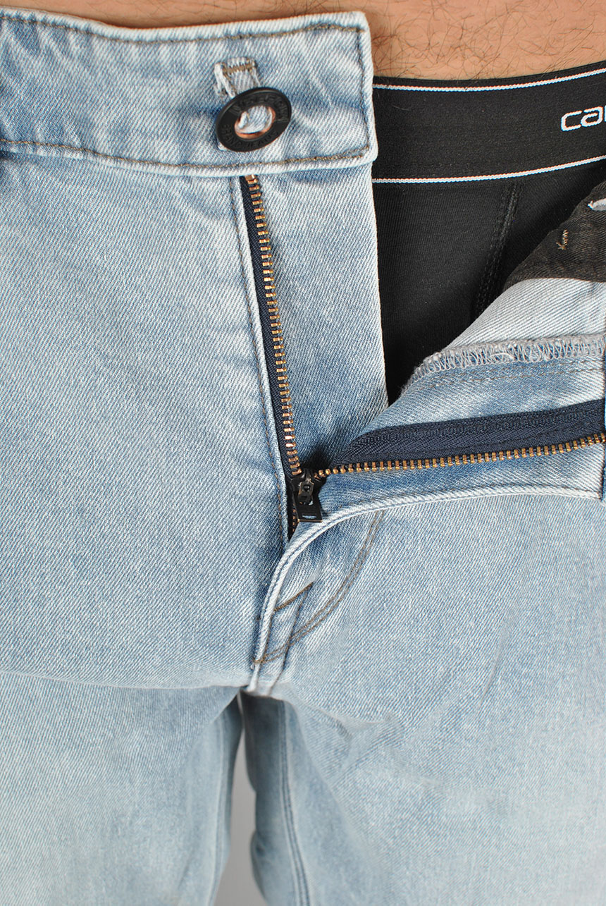● Thigh sanding and heavy knee sanding with a light dirty tint