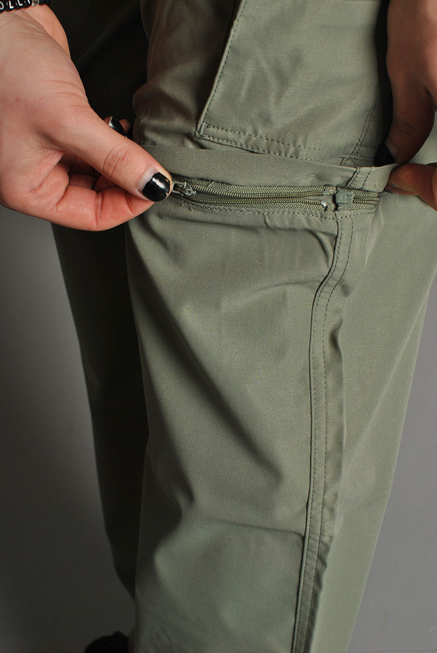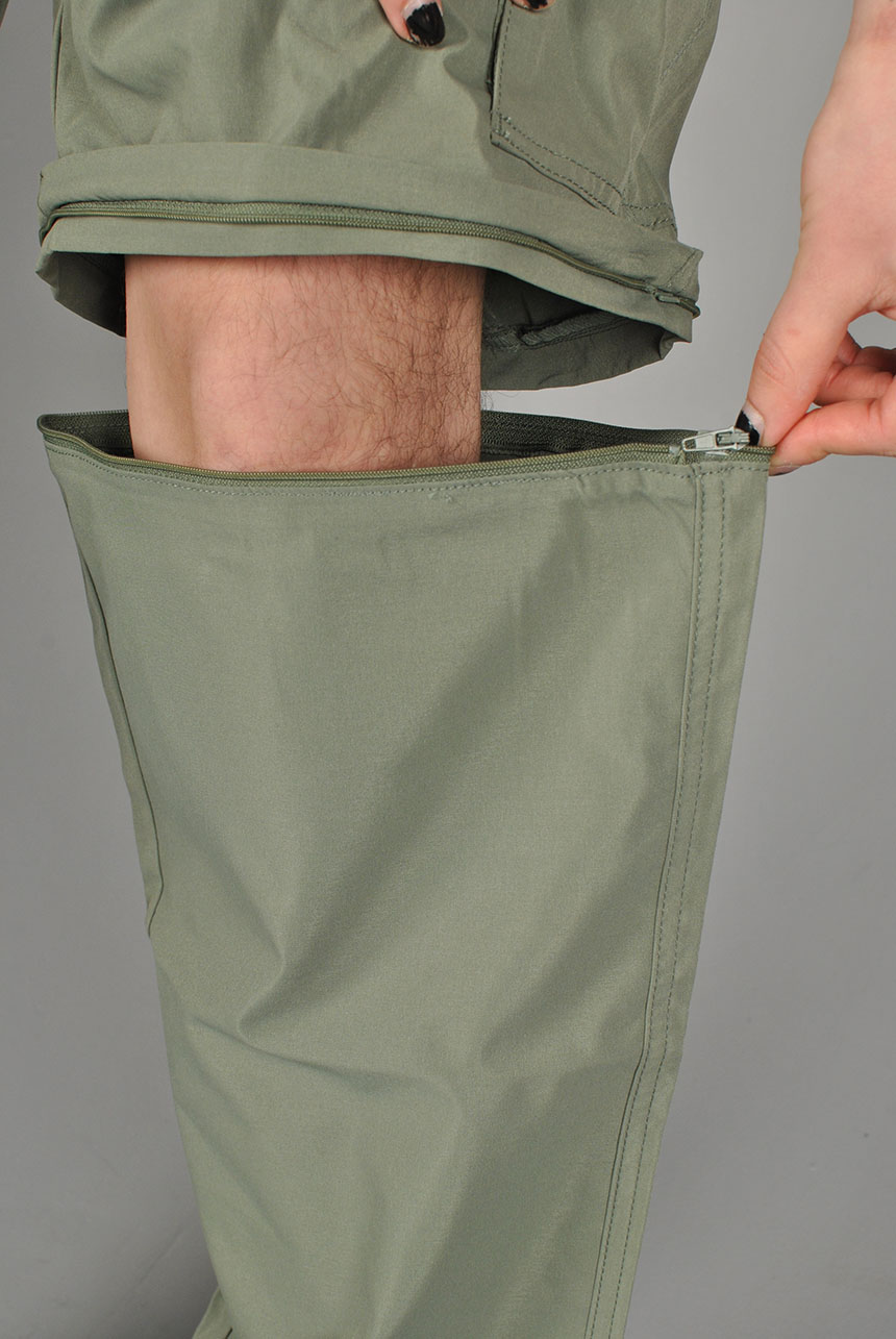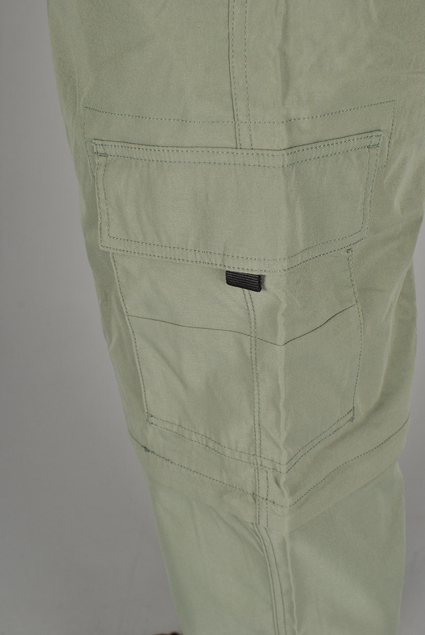 - Side cargo pockets with velcro closure, lower leg zips off to a 20" short