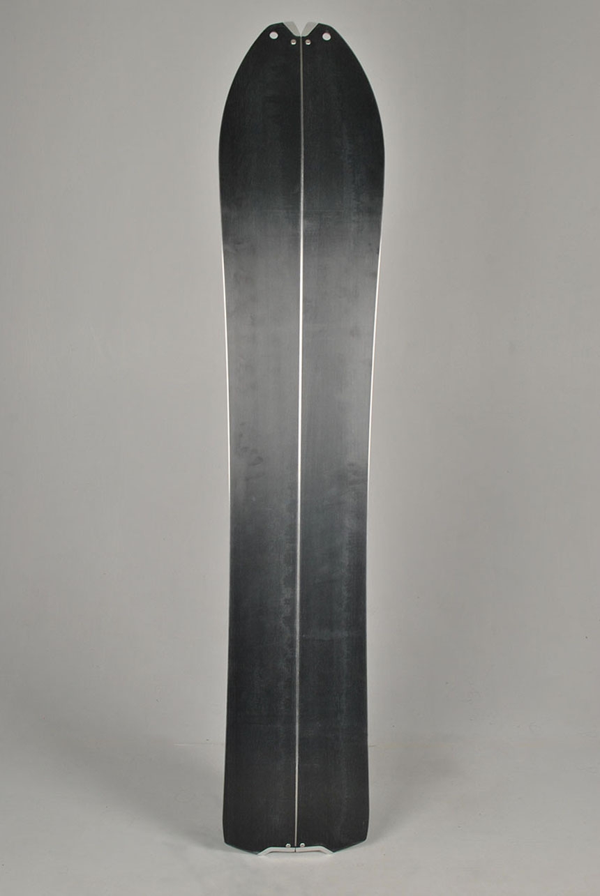 The Escalator Split features our FLOAT CAMBER, which curves into a rocker shape in the nose, giving you the lift you need in deep powder and stability under-foot on the uphill. To further enhance the performance and durability of this ultralight shape we upgraded the Escalator with the snow-repellent and repairable Perlatech topsheet. The nose holes secure our U-Hook skin mounting system and the nose notch prevents hang ups in the skin track. For an easy and quick setup we suggest using our pre-cut custom skins on this shape.