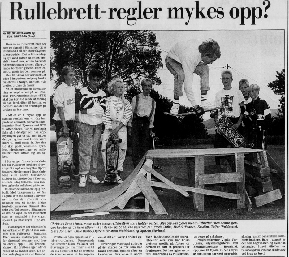 Skateboom! Skatemiljøet i Norge opplevde en enorm vekst i årene etter at det ble lovlig med rullebrett. I oljebyen ble «Stavanger Open» en stor og viktig konkurranse hvert år. Også i Oslo ble det arrangert skatekonkurranser.