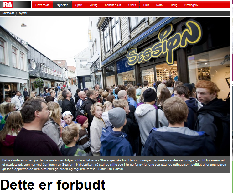 Stor ståhei og lang kø før åpningen av Session´s Flagship Store i Stavanger.