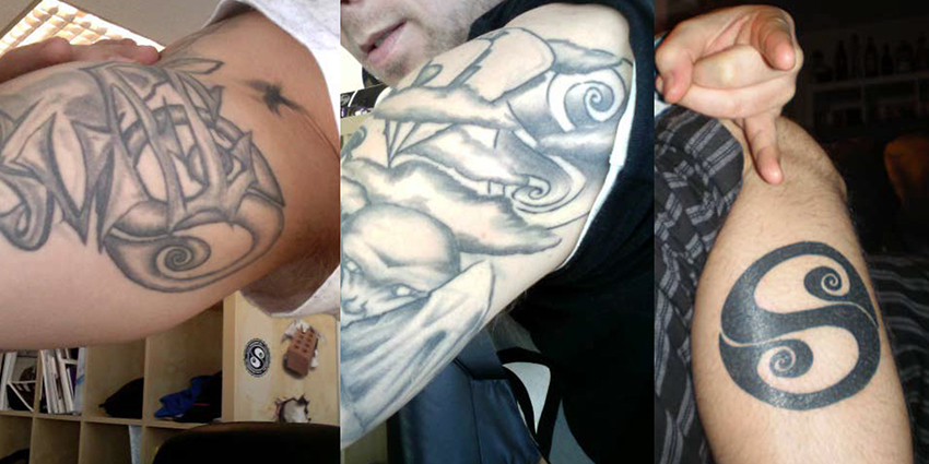 7 av våre nåværende og tidligere ansatte har tatovert Session S på kroppen.