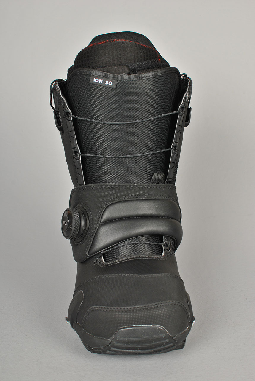 The men's Burton Ion Step On® Snowboard Boots combine the legendary Ion boot with the intuitive ease of Step On. A firm flex and foot-hugging support provide the power to charge as you like. A BOA® Fit System lets you micro-adjust the feel and tension to suit your riding style. Add out-of-the-box comfort plus liner tech to manage sweat and seal in heat and you've got happy feet that keep you riding longer. Three connection points to the binding, two at the toe and one at the heel, allow for unmatched security and board control. Just step on and go